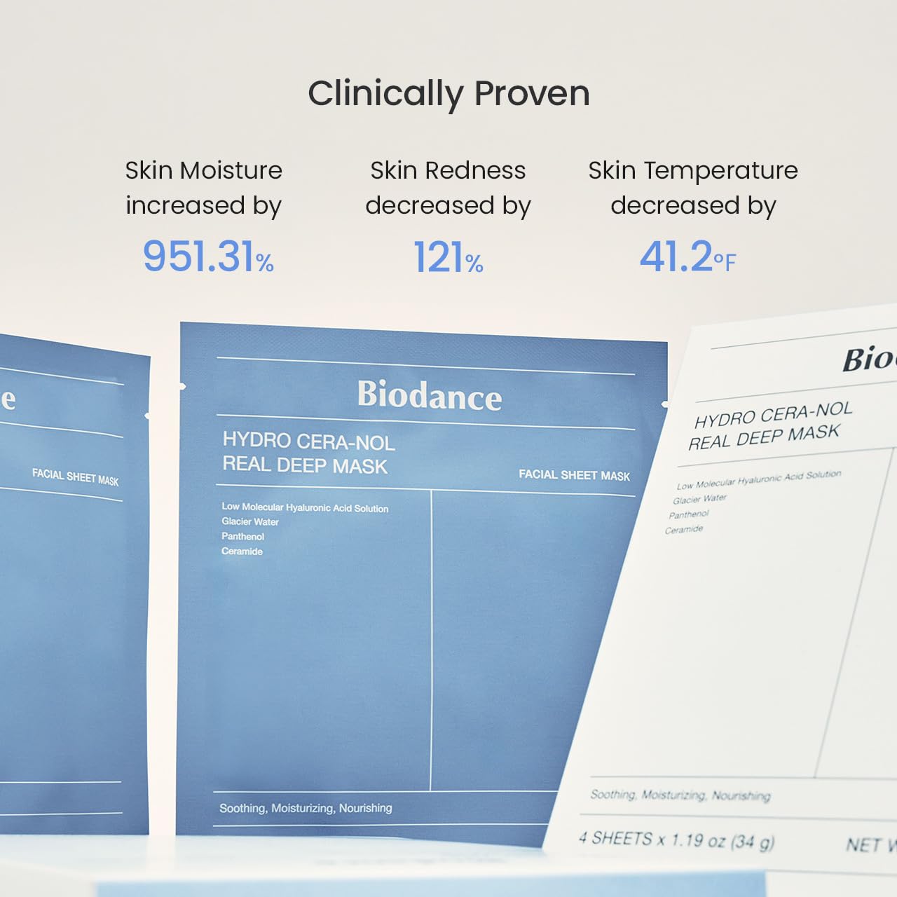 BIODANCE Bio-Collagen Real Deep Mask, Hydrating Overnight Hydrogel Mask, Pore Minimizing, Elasticity, Plumping Improvement, Korean Skincare, Stocking Stuffers for Teen Girls | 1.19oz(34g) x 4ea(Cera-nol,4 Count (Pack of 1))