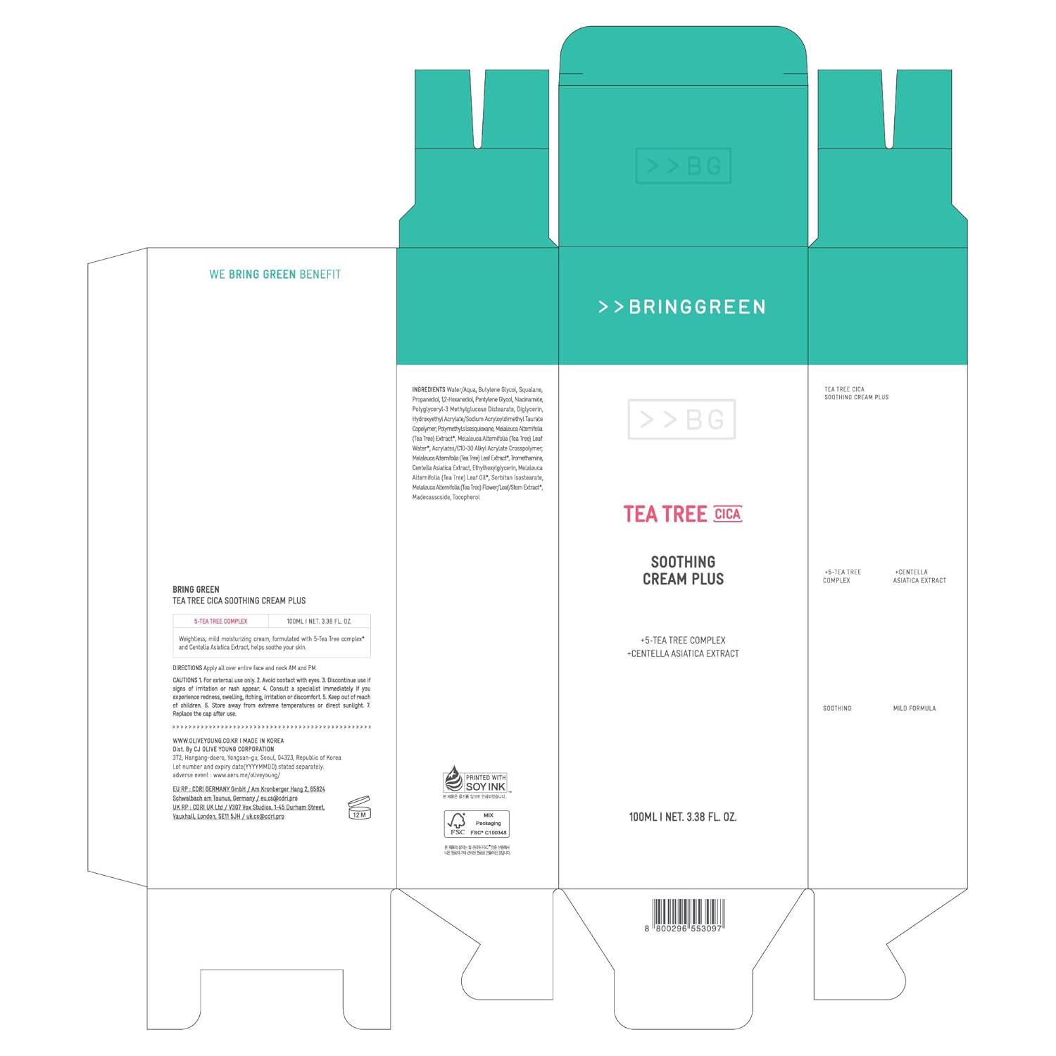 BRING GREEN Tea Tree Cica Soothing Cream Plus 100ml Korean Skin care, calming and soothing, moisturizer for skin, facial cream, trouble care, Blackhead Removing Pore care (Pack of 1)(3.4 Fl Oz (Pack of 1))