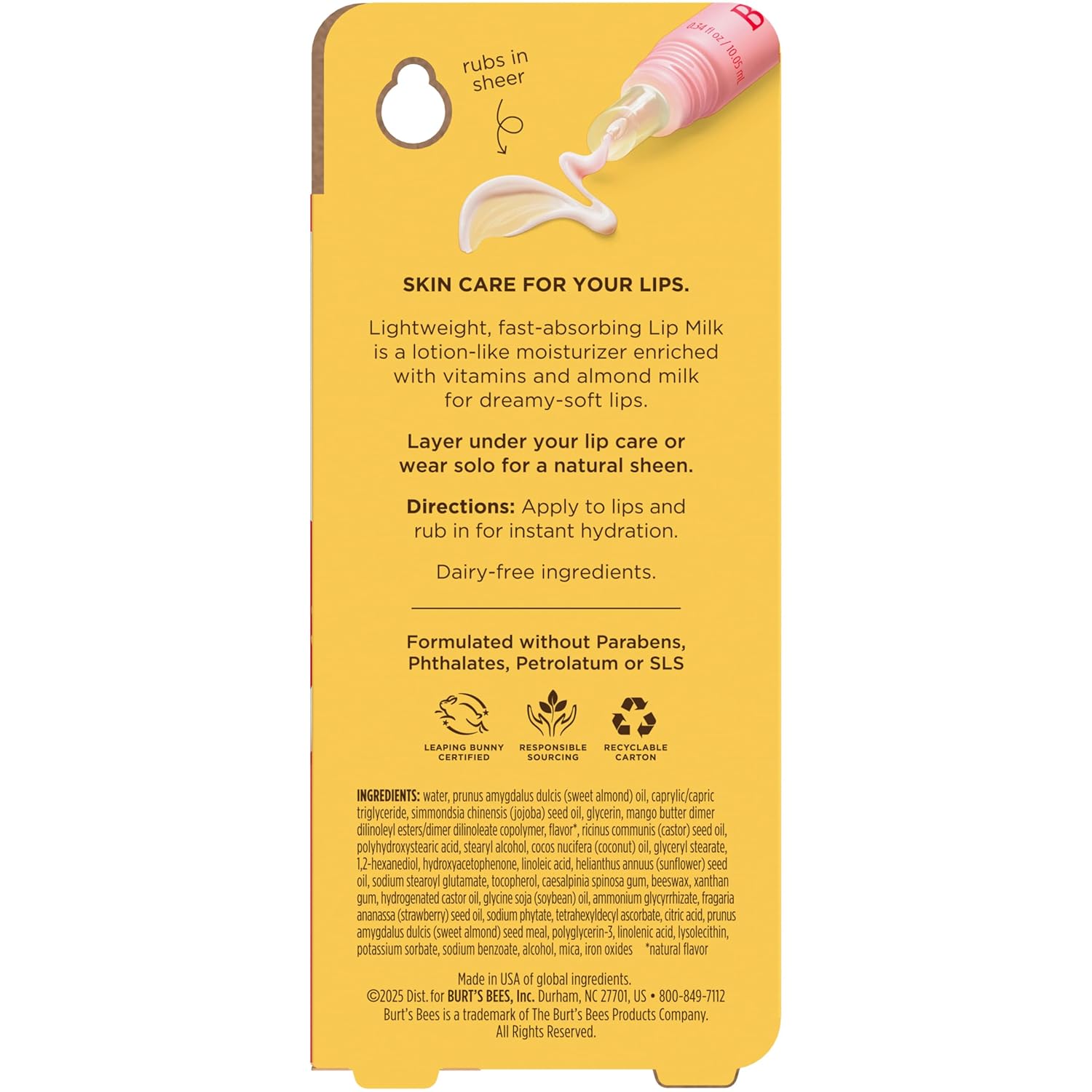 Burt’s Bees Stocking Stuffers, Lip Milk, Daily Lip Moisturizer, Sweet Strawberry, Vitamin Enriched Moisturizing Lip Balm with Almond Milk and Jojoba Oil, Hydrating for Softer Lips, 1 Tube, 0.34 Fl Oz(Sweet Strawberry,1 Count (Pack of 1))