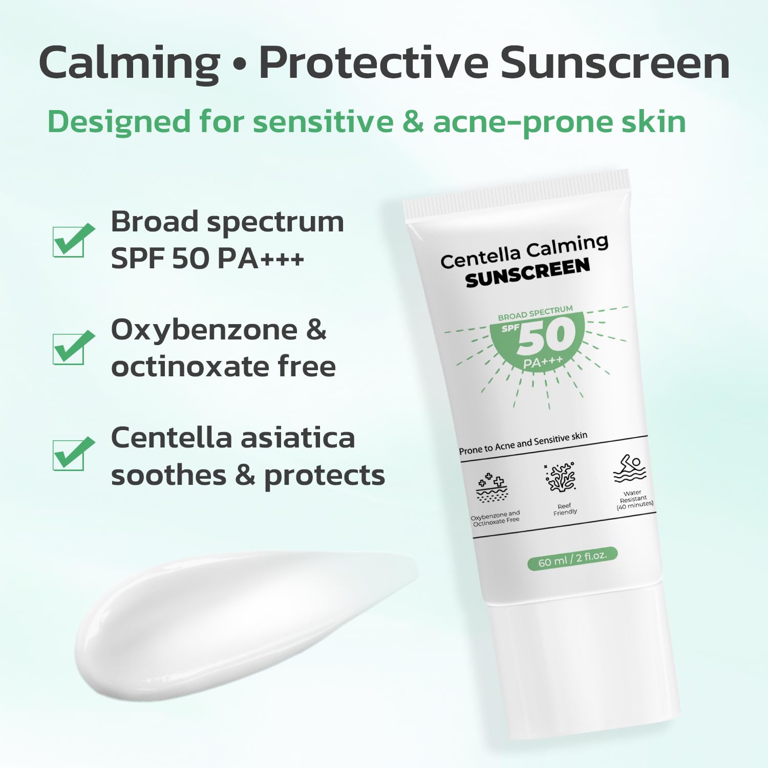 Gentle & Skin-Friendly: Free from fragrance, parabens, oxybenzone, and ethylhexyl methoxycinnamate, centella facial sunscreen is suitable for all skin types, including sensitive and acne-prone skin