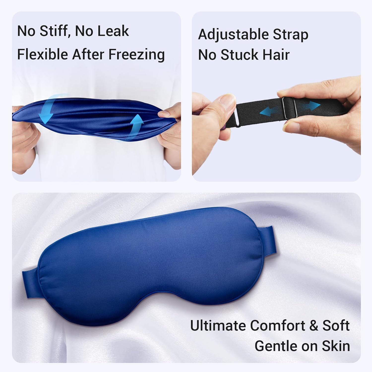 【Adjustable Band for Everyone】The adjustable elastic band is suitable for all head shapes, it is gentle on the hair and won't be stuck in the hair.For cold compresses to relieve eye pain, refrigerate the sleep masks for women for at least 30 minutes before use.