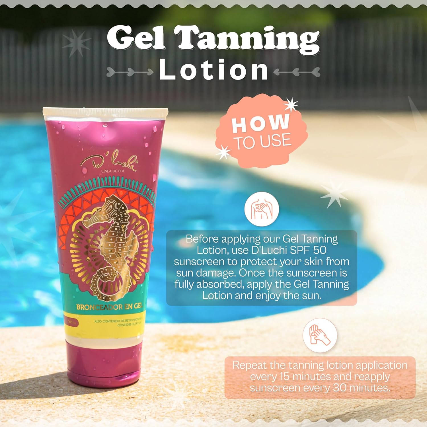 D'luchi Gel Bronzer | Beta-Carotene Concentrate for an Intense Tan! Achieve a deep tan and keep your skin hydrated at all times with our Tanning Gel