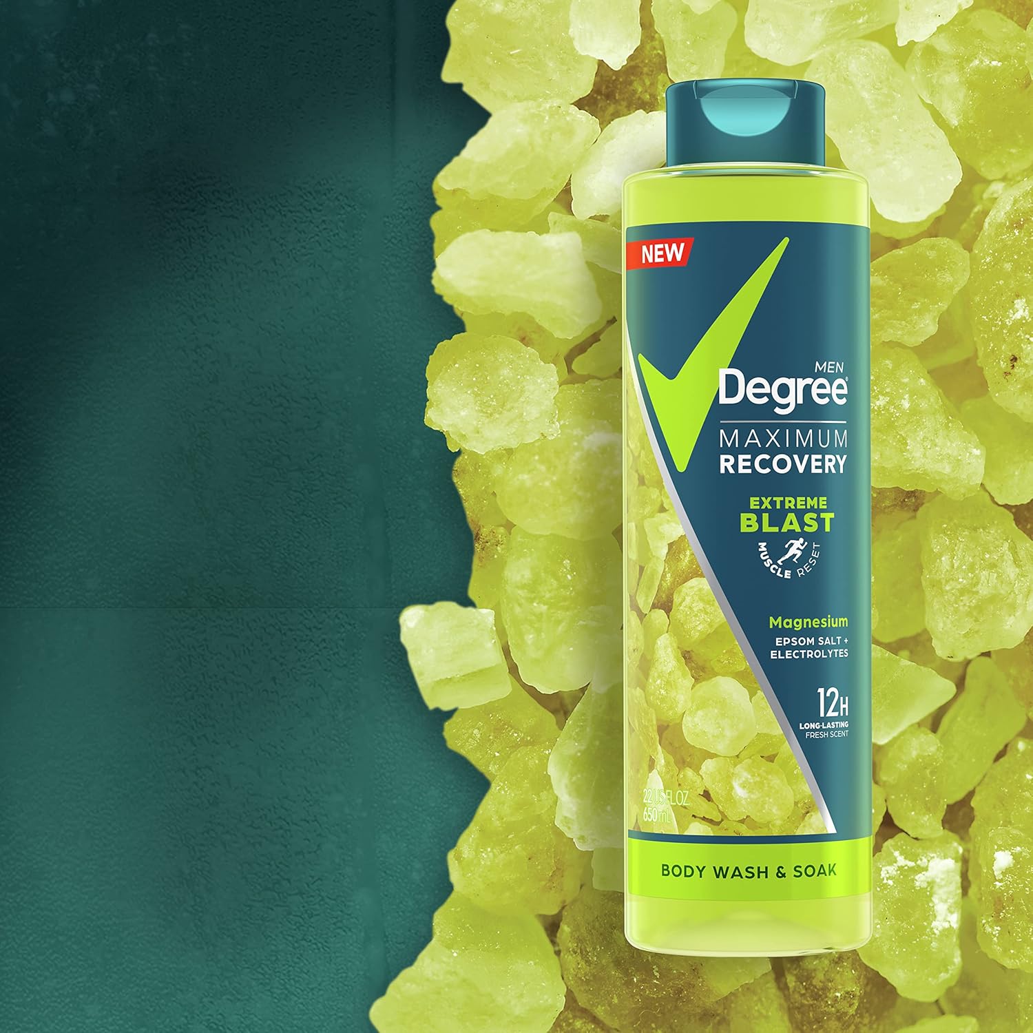 Degree Men Maximum Recovery Body Wash and Soak For Post-Workout Recovery Skincare Routine Extreme Blast + Epsom Salt + Electrolytes Bath and Body Product 22 oz(21.9 Fl Oz (Pack of 1))