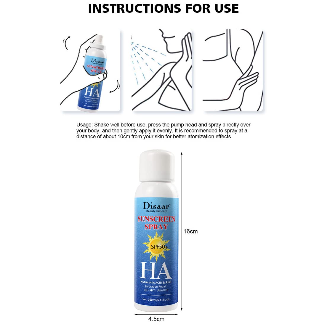 Comment on "DISAAR BEAUTY Sunscreen Spray SPF50+ HA Hyaluronic Acid Snail Hydration Repair UVA/UVB 160ml/5.41oz"