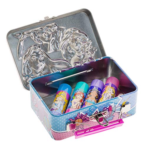Disney Princess Lip Balm With Fun Tin Gift Set - 5 Pieces includes travel tin and 4 lip balms.