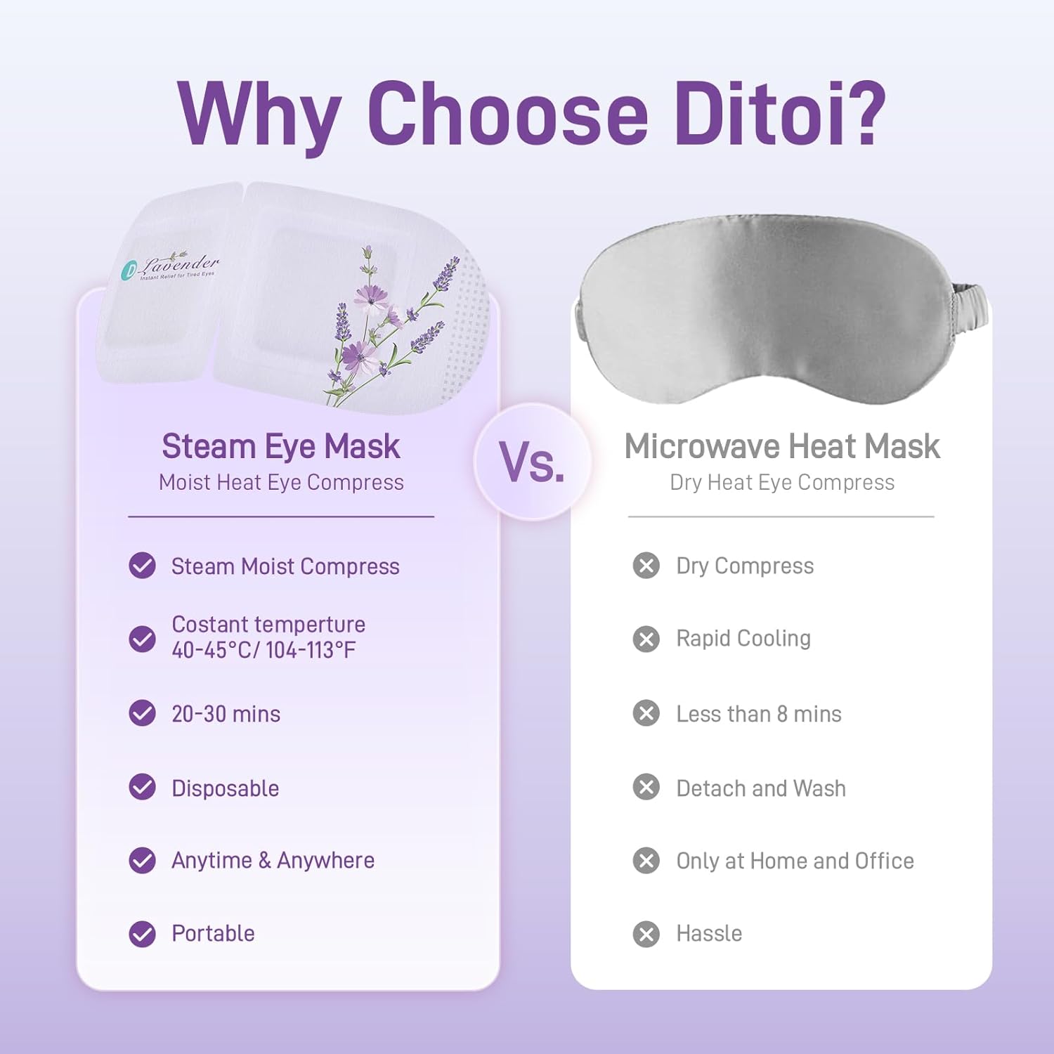 [ Eye Mask Skincare ]: The Ditoi Steam Eye Mask uses lavender essential oil, combined with steam and hyaluronic acid hot compress, to feel the fragrance of rose essential oil, allowing people to easily enter a sleep state, while providing vitality and soothing effects for tired eyes.the disposable eye masks conform to all face shapes , working seamlessly for daytime or nighttime use—whether during sleep, light naps, travel, or after a long day of screen time