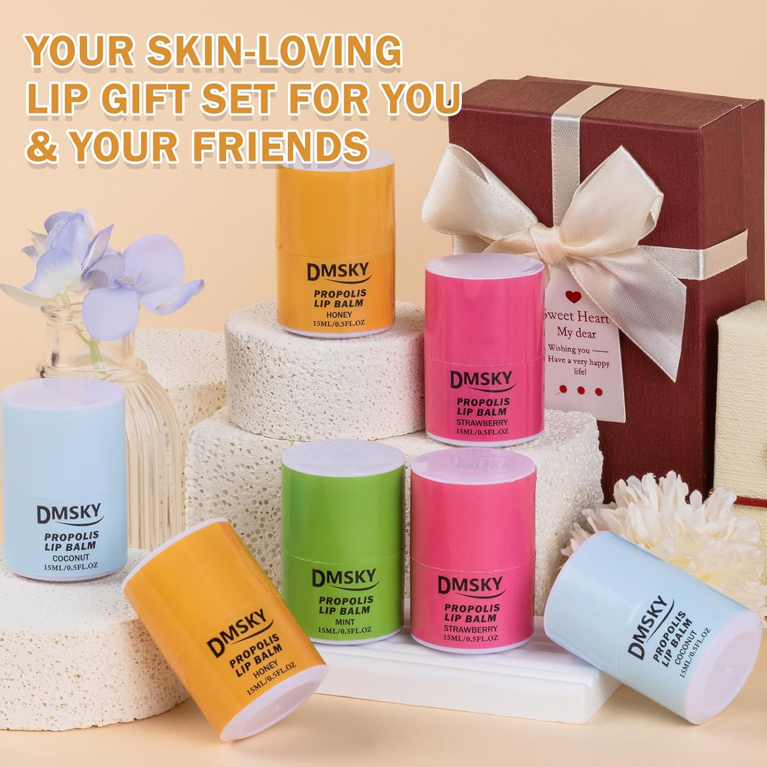 DMSKY Lip Sleeping Mask Set 8 Pack, Lip Butter with Propolis and Vitamin E, Lip Balm for Dry Lips, Reduce Lip Lines and Improve Lip Color