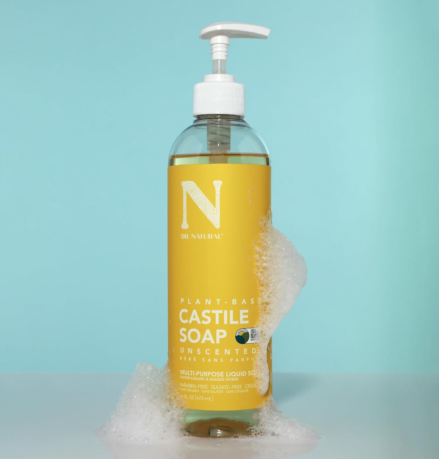 Dr. Natural Castile Liquid Soap - Multi-Use Body Wash, Shampoo and Face Wash - Body Soap for Skin, Hair, Pets and Home - Unscented Baby - 16 oz(Unscented,16 Fl Oz (Pack of 1))