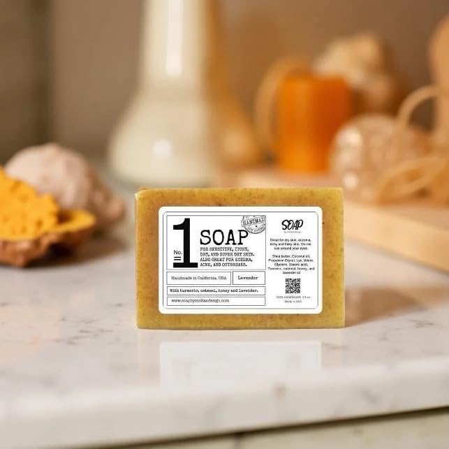 No1 Dry pot soap with turmeric. Great for acne, outbreaks and dry skin. Oatmeal and honey together with lavender calm down irritated skin.