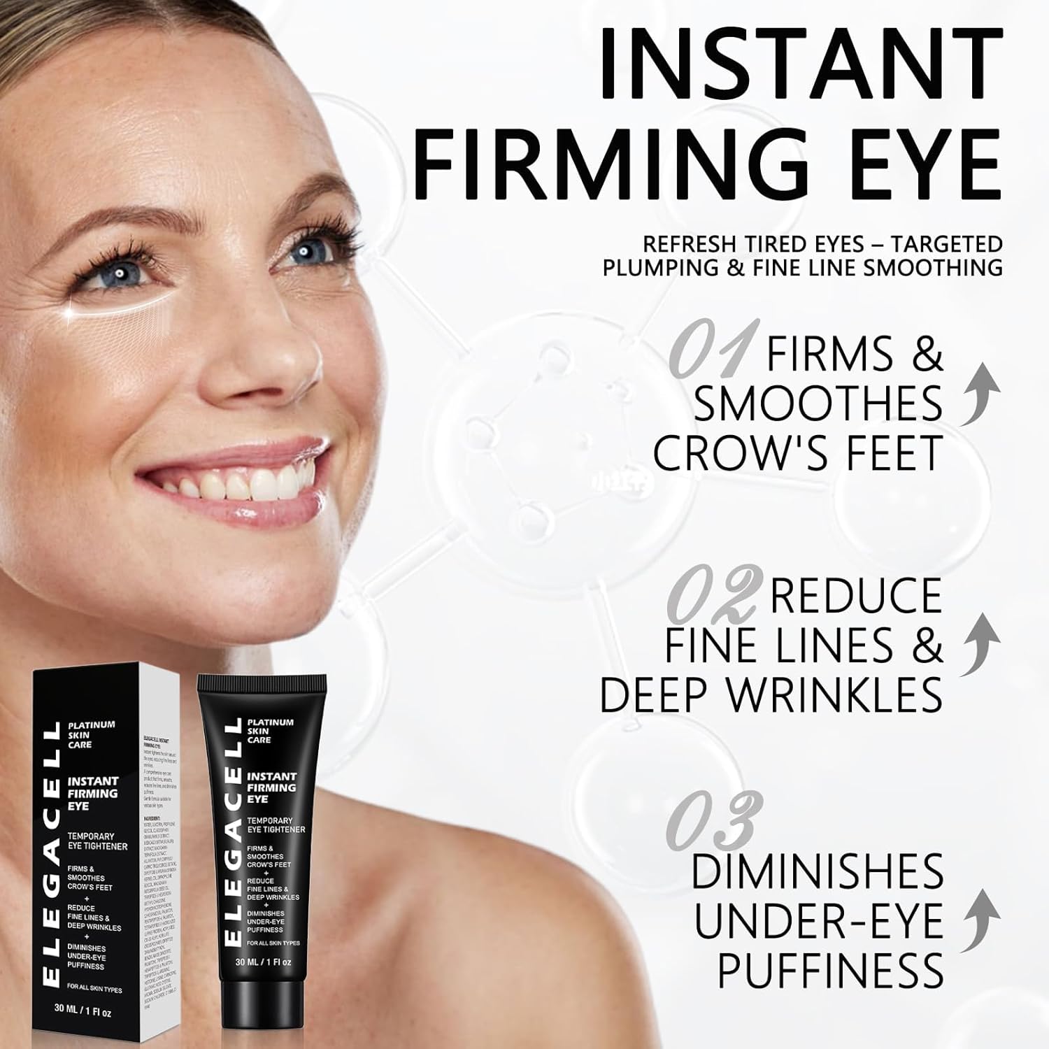 Elegacell Temporary Eye Tightener Cream Instant Firm Eye - Smooth the Look of Fine Lines, 1 Fl oz / 30ml