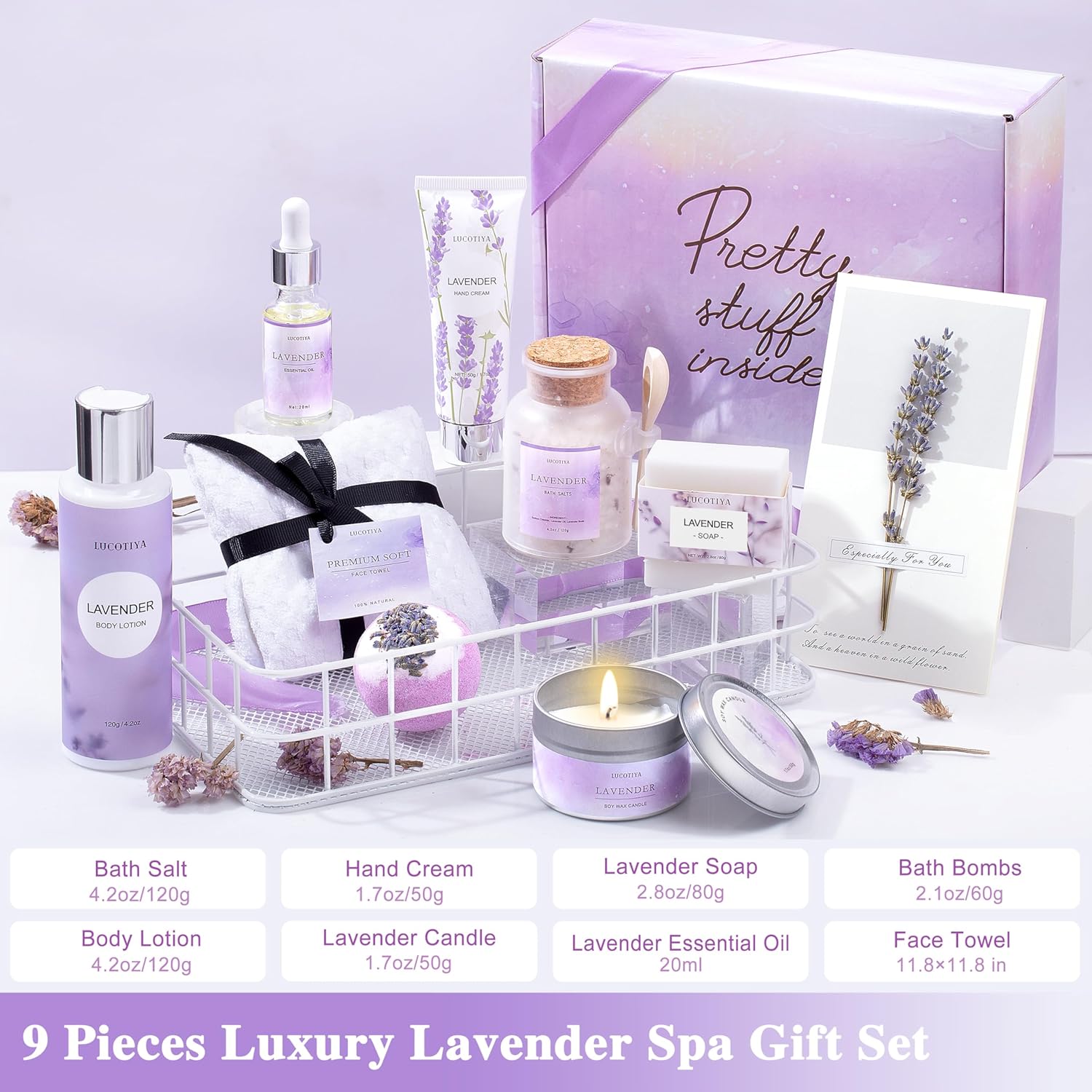 Gifts for Women Spa Gifts Baskets for Women Birthday Gifts Lavender Bath and Body Sets Mothers Day Gifts Relaxing Self Care Get Well Gift for Mom Her Girlfriends Sister Teacher Friends Coworkers(Spa Gifts)