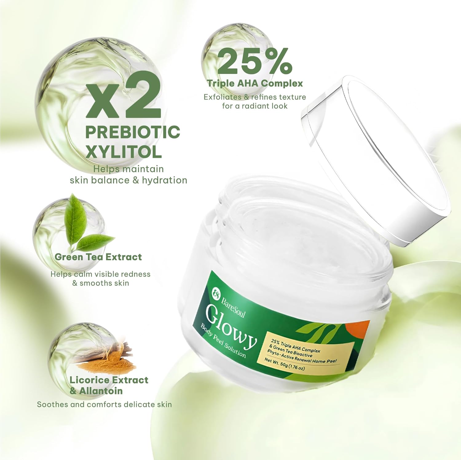 Comment on "Glowy Body Peel - 25% AHA Exfoliating Body Scrub for Women - Improves Uneven Texture on Underarms, Elbows, Knees & Buttocks - Gentle Body Skin Care Products - 1.76 Oz | 50g"