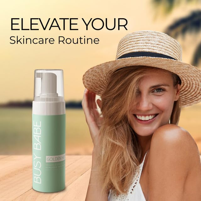 SEAMLESS APPLICATION: Experience a hassle-free application process with Busy Babe Golden Hour Rapid Bronze sunless tanner. Provide a streak-free finish every time, so you can flaunt your luminous radiance with confidence. Made with a unique blend of ingredients, our foam tanning mousse ensures faultless results, leaving you with a flawless tan that lasts. Say goodbye to streaks and hello to flawless radiance with Busy Babe.