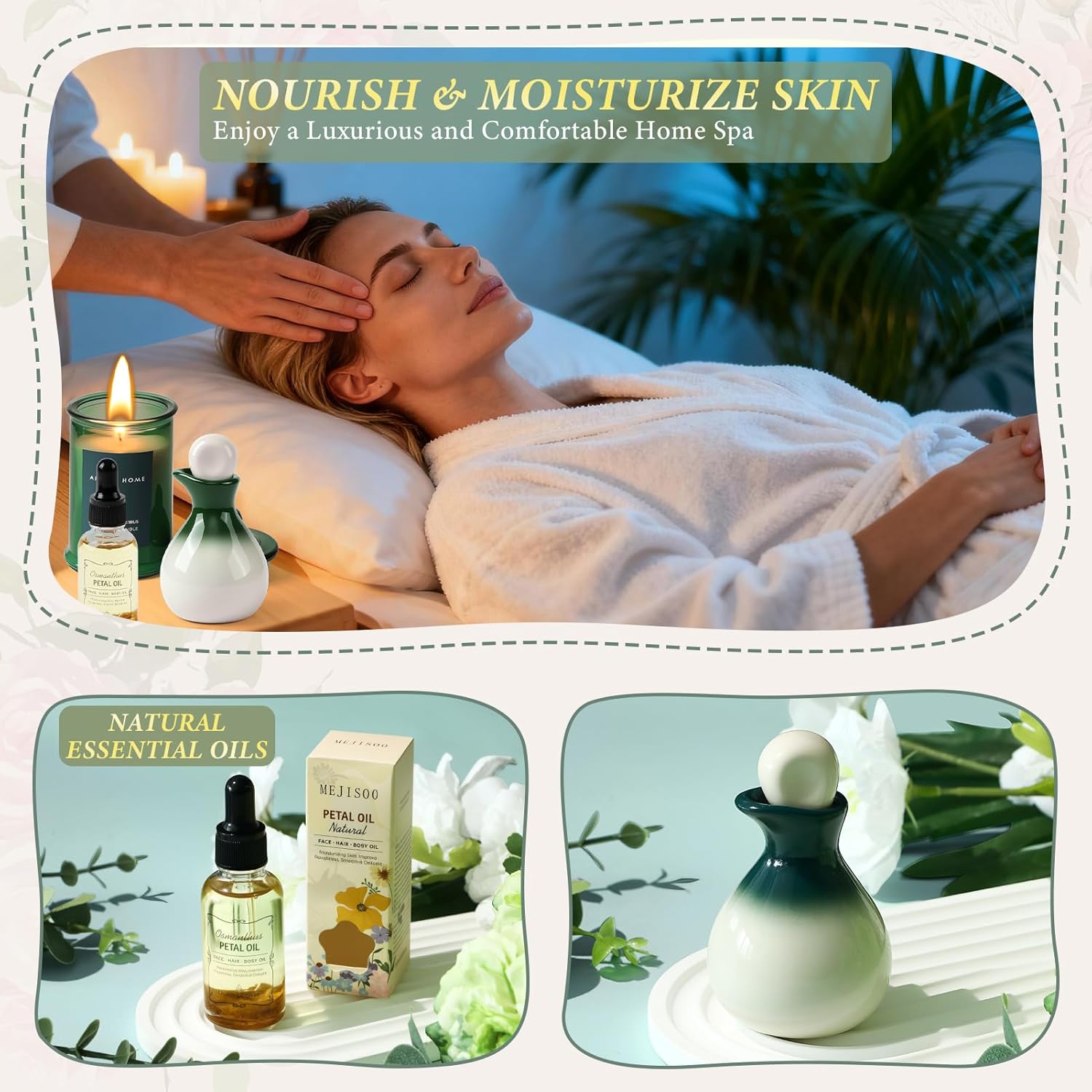 CALM MIND, SOOTHE SENSES: Light the scented candle or add essential oil to the decorative bottle for a soothing aromatherapy session. The enchanting scents help melt away stress and foster a peaceful atmosphere. These spa gifts for women are ideal for helping her relax and recharge, making this care package for women a thoughtful thinking of you or get well gift