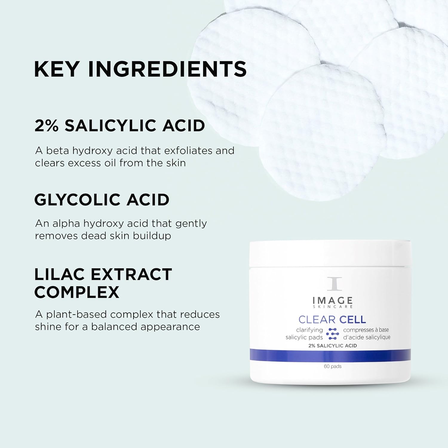 IMAGE Skincare, CLEAR CELL Salicylic Clarifying Pads, Exfoliating Wipes to Clarify Pores for Oily Prone Skin, 60 Pads