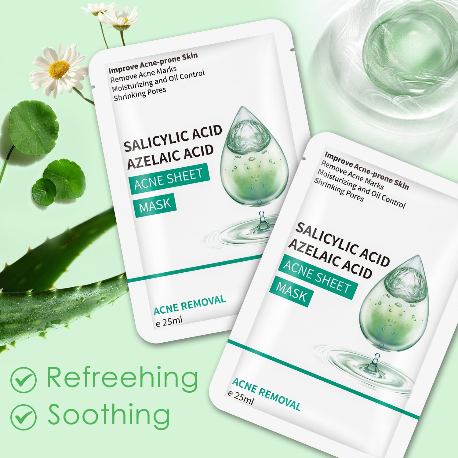 IREV Anti Acne Face Mask,Sheet Masks With Salicylic Acid, Face Masks Skincare For Acne, Acne Sheet Mask for Acne-Prone, Oily, and Sensitive Skin, Deep Pore Cleansing Facial Mask 10 Sheets