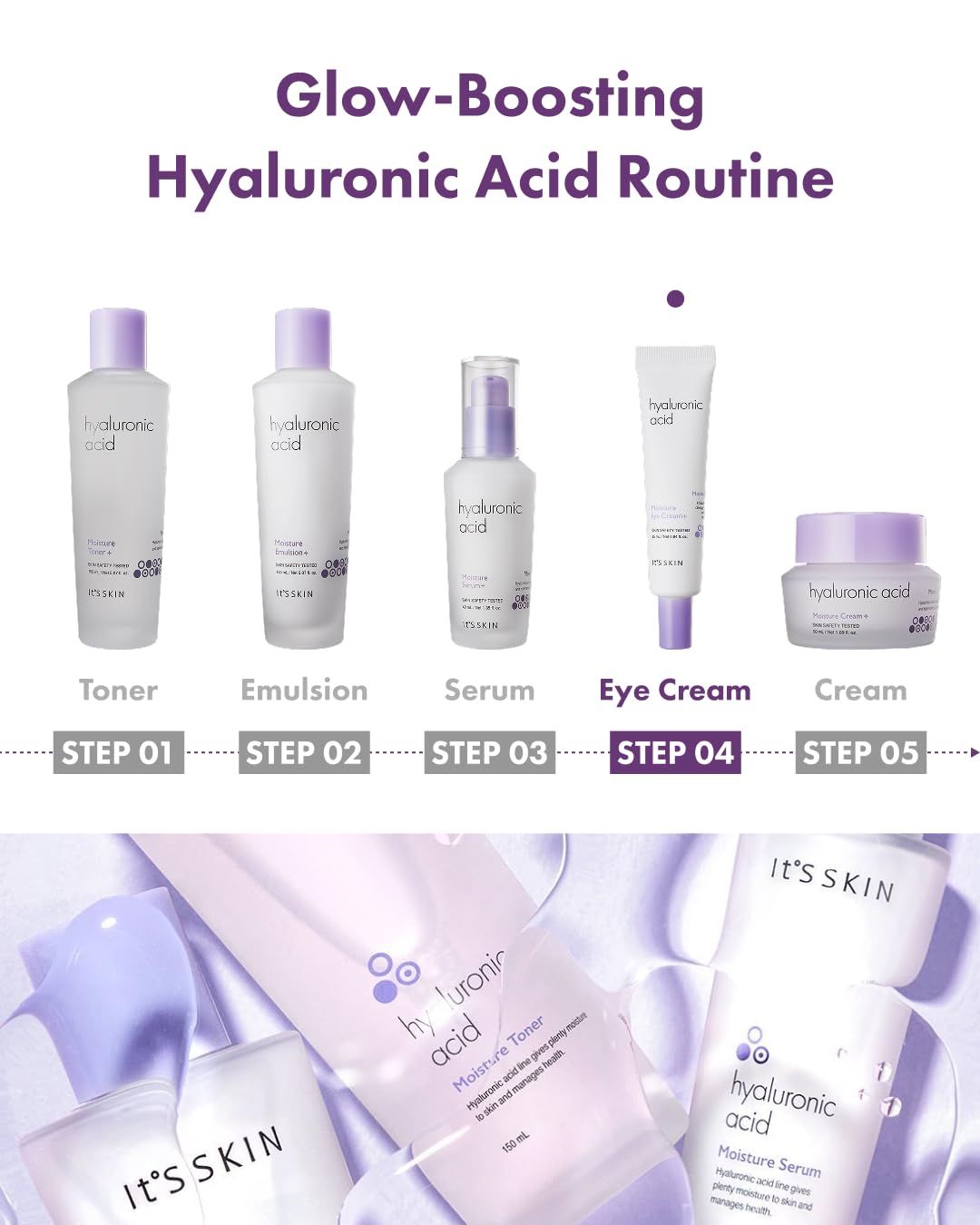 HYDRATING AND NOURISHING: It's Skin Hyaluronic Acid Moisture Eye Cream delivers deep hydration to your skin and restores its natural water balance. Our hydrating eye cream locks in the skin moisture to prevent dryness, keep the skin moisturized, and offers a shine-free glow.