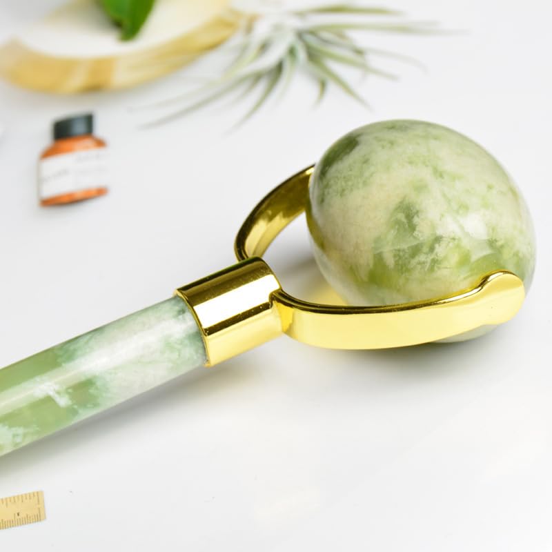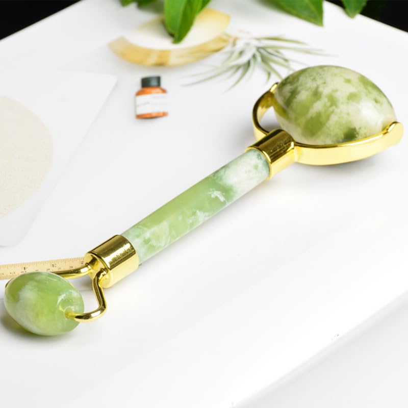 Premium Green Jade Rollers: The jade facial roller is designed to alleviate puffiness, rejuvenate the skin, and enhance firmness for a radiant, lifted appearance. The natural energy of jade promotes harmony between physical and spiritual well-being, providing protective skincare benefits.