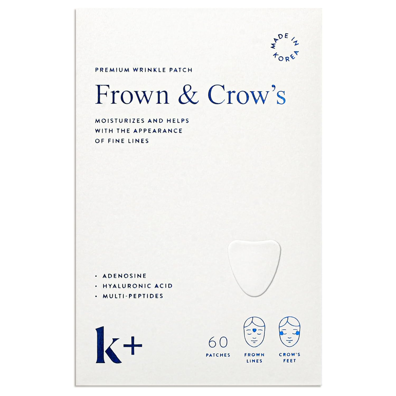 K+ Wrinkle Patches for Forehead, Crow’s Feet & Smile Lines – Korean Overnight Patches with Hyaluronic Acid, Peptides & Adenosine (60 Count)