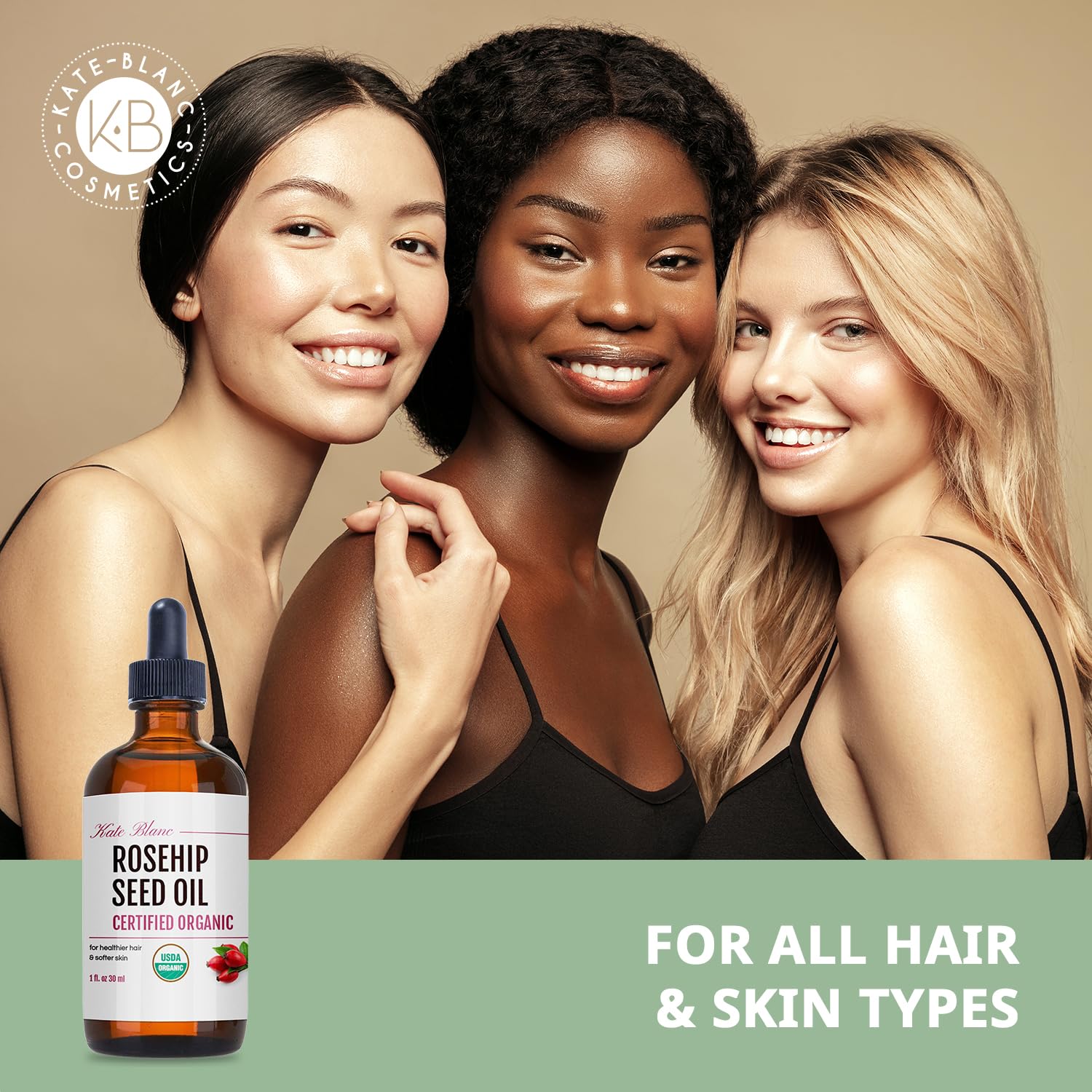 Kate Blanc Cosmetics Rosehip Oil for Face & Softer Glowing Skin (1oz, Organic, Pure, Cold Pressed) Rosehip Seed Face Oil for Facial & Gua Sha Massage(No Kit,1 Fl Oz (Pack of 1))