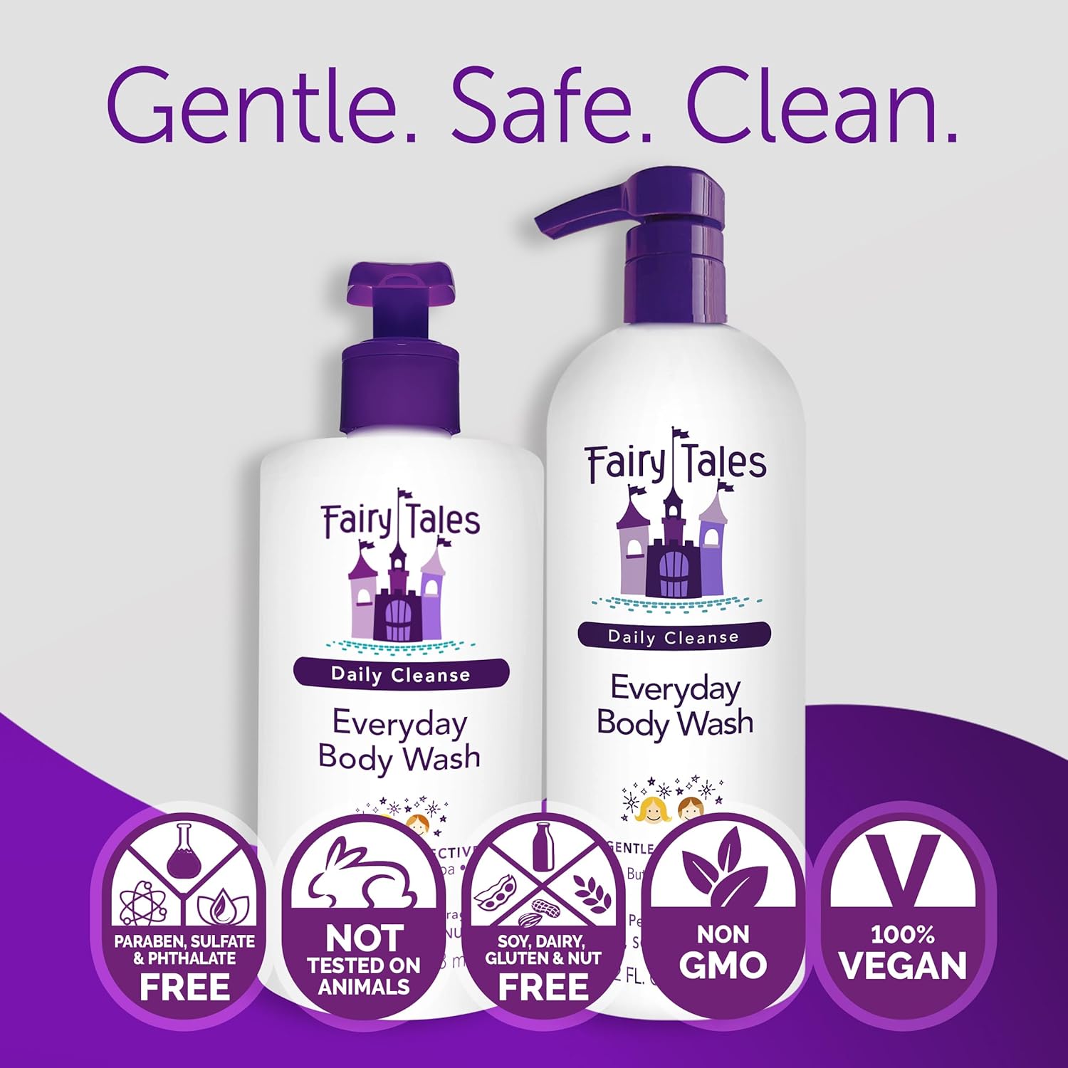 An Everyday Essential: The Fairy Tales Daily Cleanse Body wash is specially formulated for a deep clean without stripping oils. Rich, creamy, low lather body wash rinses off quickly and completely...leaving your kids skin feeling great all day