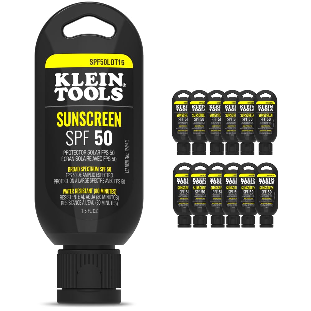 Klein Tools SPF50LOT15 Sunscreen Lotion, SPF 50, 120-Minute Water-Resistant, Broad Spectrum UVA/UVB Sun Protection, Non-Greasy, 1.5-Ounce Tube, 12-Pack(Lotion)