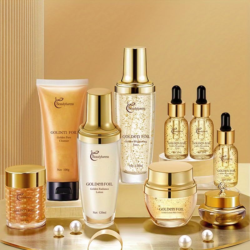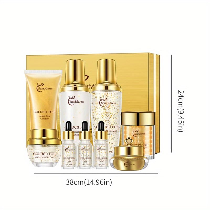 Complete Collagen Skin Care Set: Our skincare set is a comprehensive set includes a cleanser,toner,serum,moisturizer and eye essense and Tone-up Cream .It provides everything needed for a full skincare routine,offering controlling oil,hydrating,tightening pores,soothing,glowing and anti-aging benefits