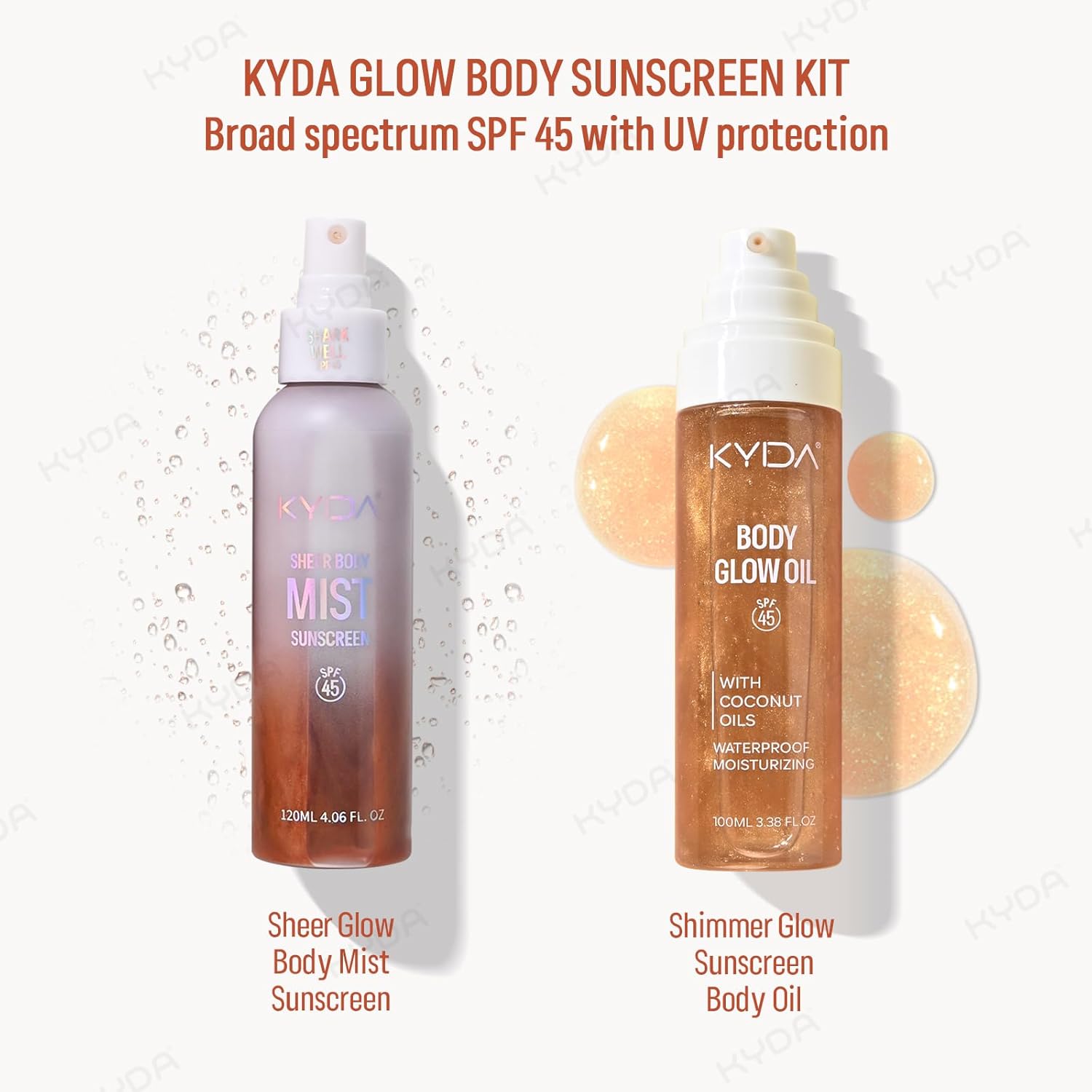 KYDA Glow Sunscreen Kit, Includes SPF 45 Body Glow Oil + Sheer Body Sunscreen Spray, Summer Beach Essentials Gift Set, Water Resistant, Moisturizing, ROSE(AMBER)