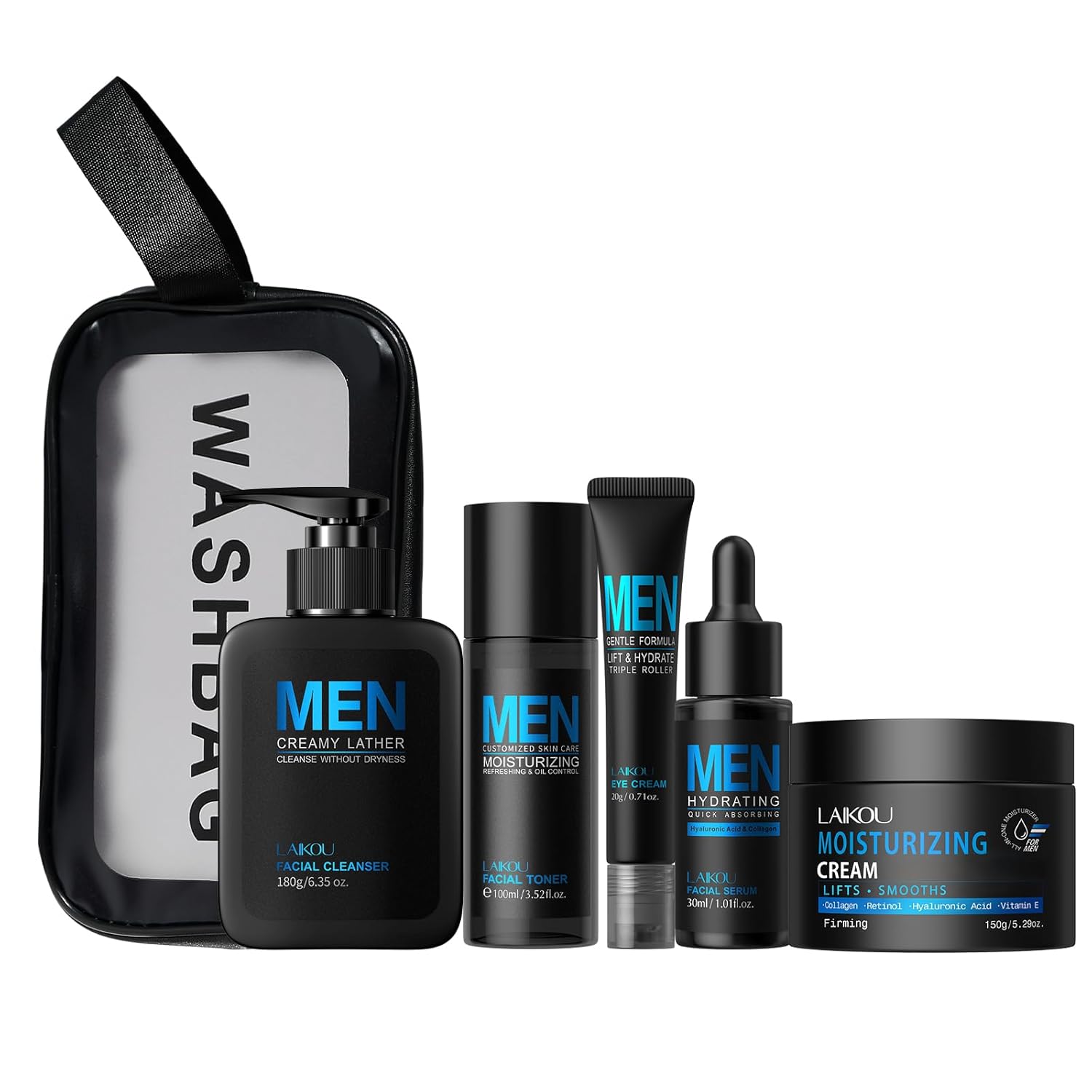 LAIKOU Men's Skin Care Set, Gifts for Men, Skincare Gift Set, Men Skincare with Facial Cream, Facial Cleanser, Facial Toner Father's Day Christmas Birthday Valentines for Him Dad Son Husband Boyfriend(Daily Skincare Set 5pcs with Cream)