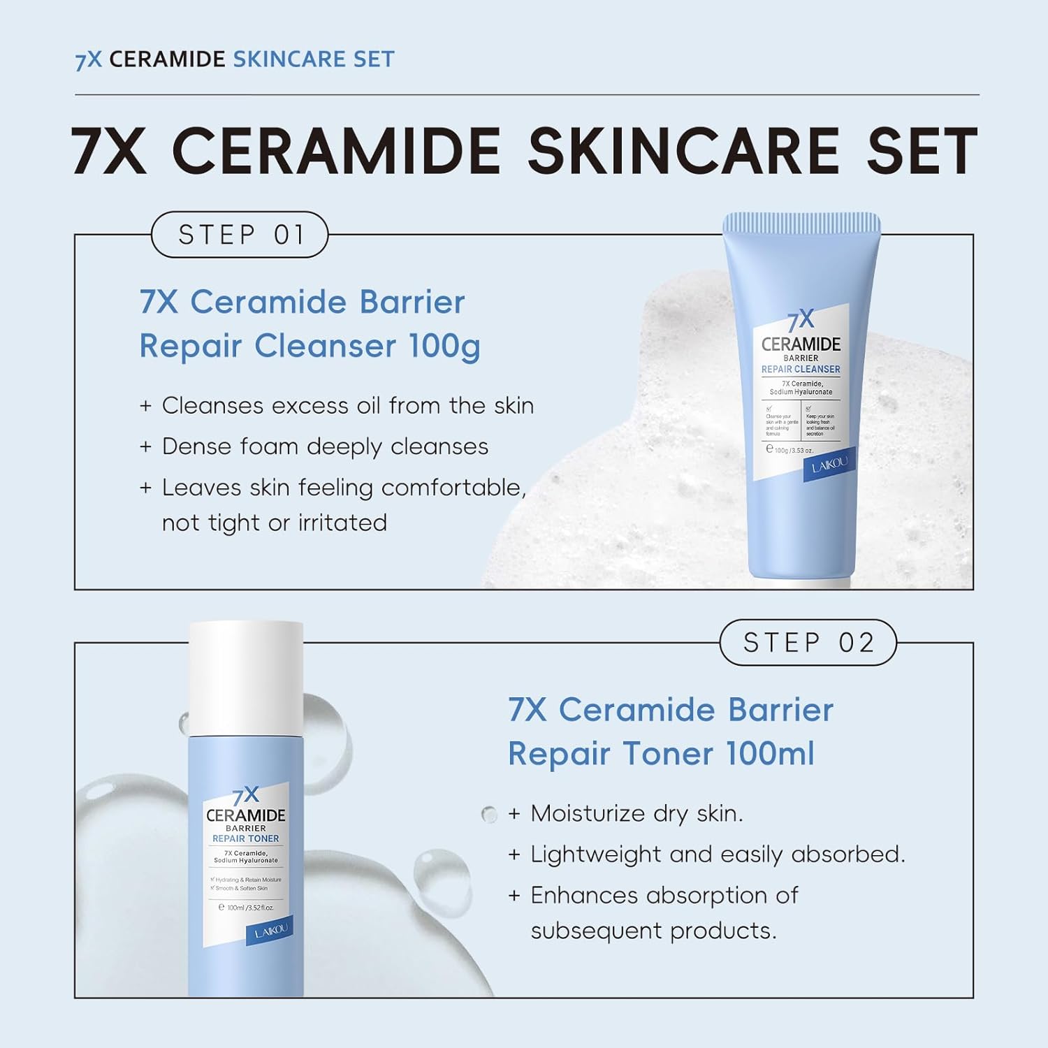 LAIKOU Skin Care Set, Skin Care Routine Kit for Women, Skincare Gift Set, Travel Size Toiletries with 7X CERAMIDE Cleanser, Toner, Serum, Eye Cream, Face Cream Mother's Day Christmas Birthday Daughter(7X Ceramide)