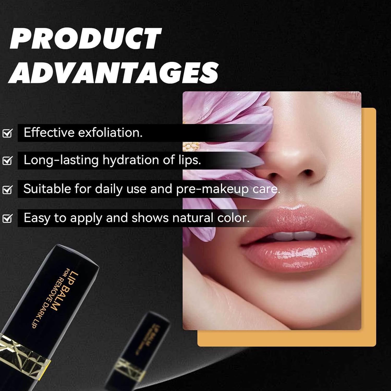 REMOVE DARK LIPS : Targets lip discoloration and lip pigmentation, reverses premature aging caused by dark lips or smoker's lips, and with continued use, your lips will be naturally pink, luscious and soft.