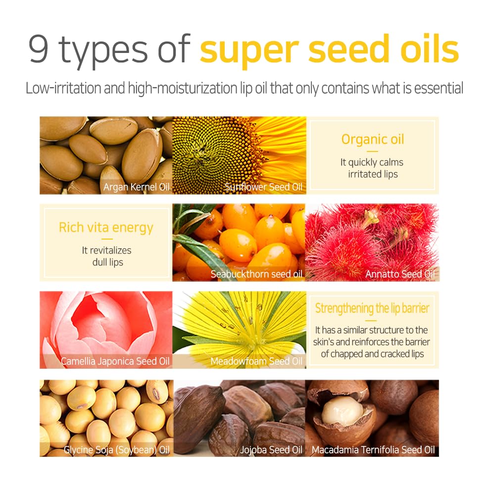 Lip Oil Super Seed | 0.10 Oz | Glass Lip, Healthy Lip Care, Moisturizing Lip Oil with Honey, Propolis, Herbal Oil, Glowy, Revitalizing, Calming Lip, Non-sticky, Non-artificial Colors