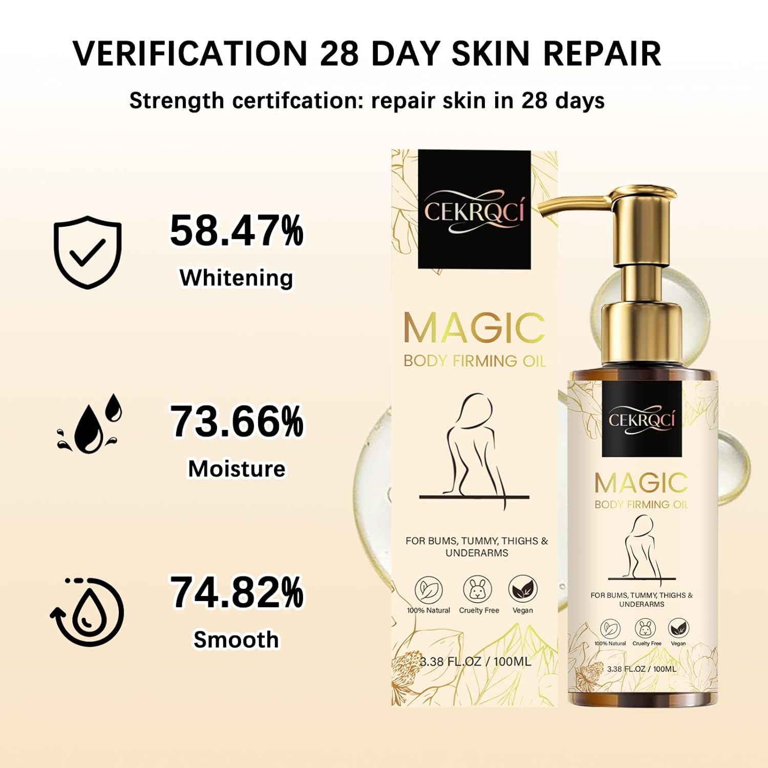 Suitable for All Skin Types: Our Body Firming Oil is designed to be gentle and non-irritating, making it an ideal choice for all skin types. Perfect for targeting arms, chest, thighs, and the entire body, it delivers exceptional results wherever applied.
