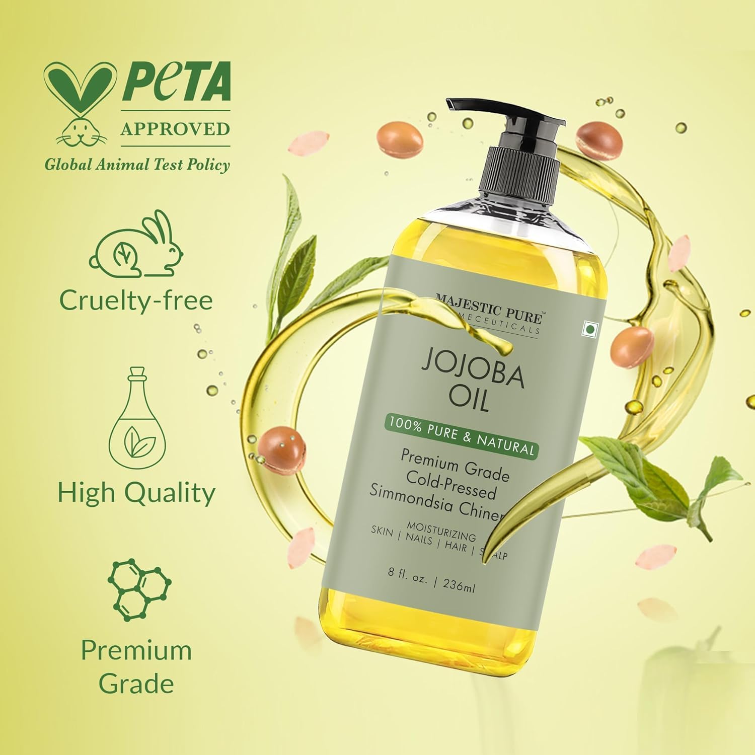 MAJESTIC PURE Apricot Oil, 100% Pure and Natural, Cold-Pressed, Apricot Kernel Oil, Moisturizing, for Skin Care, Massage, Hair Care, and to Dilute Essential Oils, 16 fl oz(Jojoba Oil,8 Fl Oz (Pack of 1))