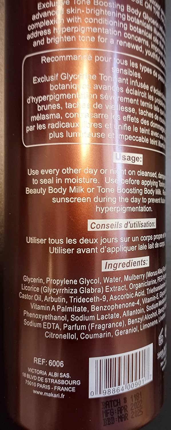 Makari Exclusive Active Intense Tone Boosting Body Glycerin (16.8 oz) | Skin-Brightening Body Glycerin | Moisturizes and Softens | Promotes Even Skin Tone | for All Skin Types Except Sensitive