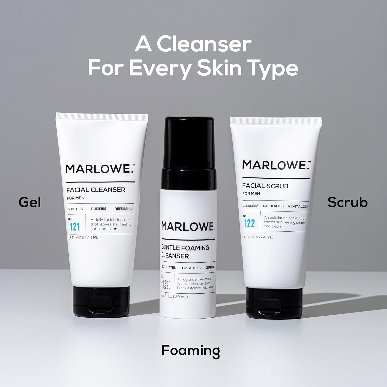 Smooths, Refreshes, Hydrates: Scrub away the day with our daily face scrub, crafted with a combination of clean ingredients like Apricot Seed Powder and Pumice. Finish with MARLOWE No.123 Facial Moisturizer to replenish and hydrate your skin