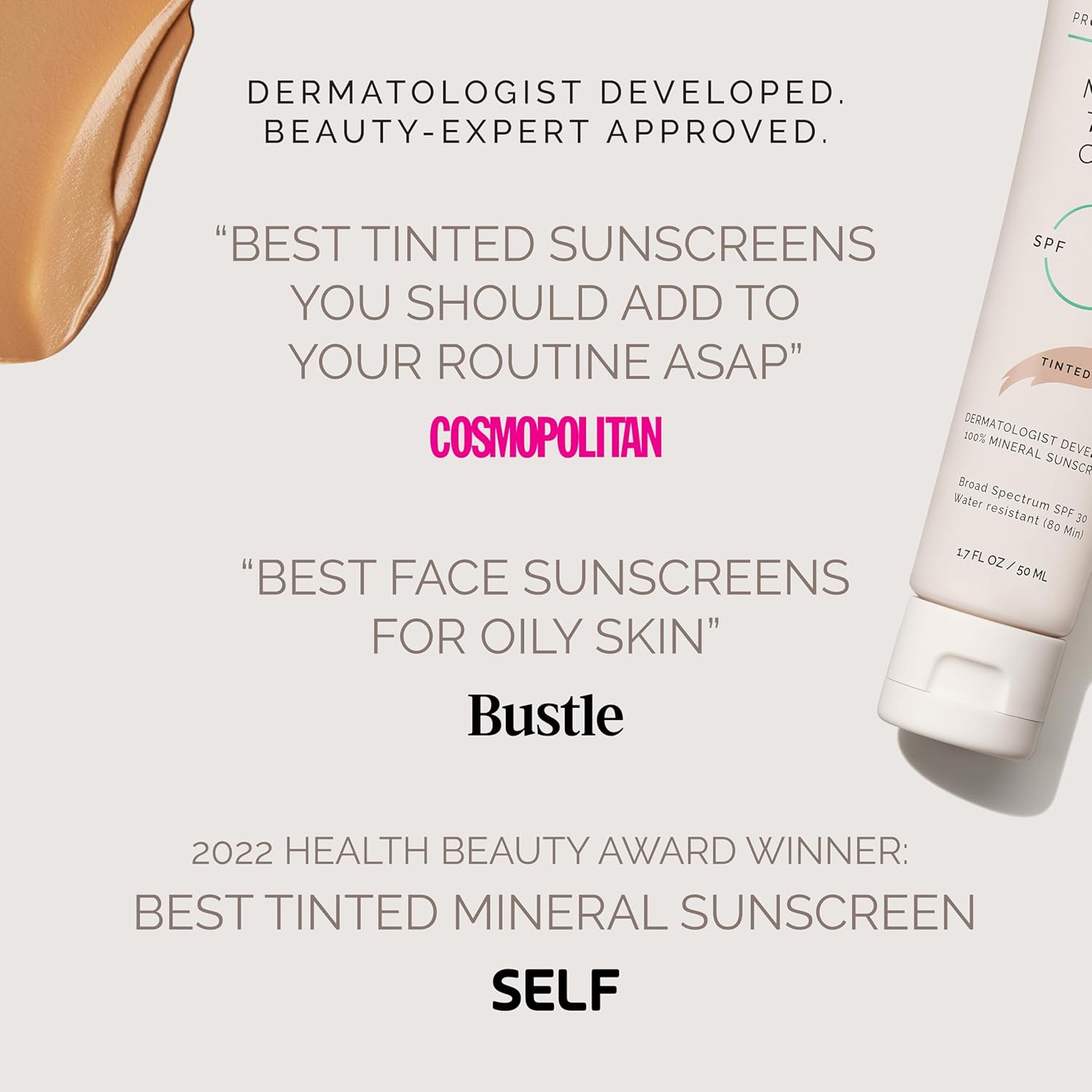 MDSolarSciences Mineral Tinted Crème Sunscreen SPF 30 | Water-Resistant, Broad Spectrum UV Protection | Blendable Micronized Zinc Oxide Cream | Natural Matte Finish for All Skin Types (1.7 Fl Oz)