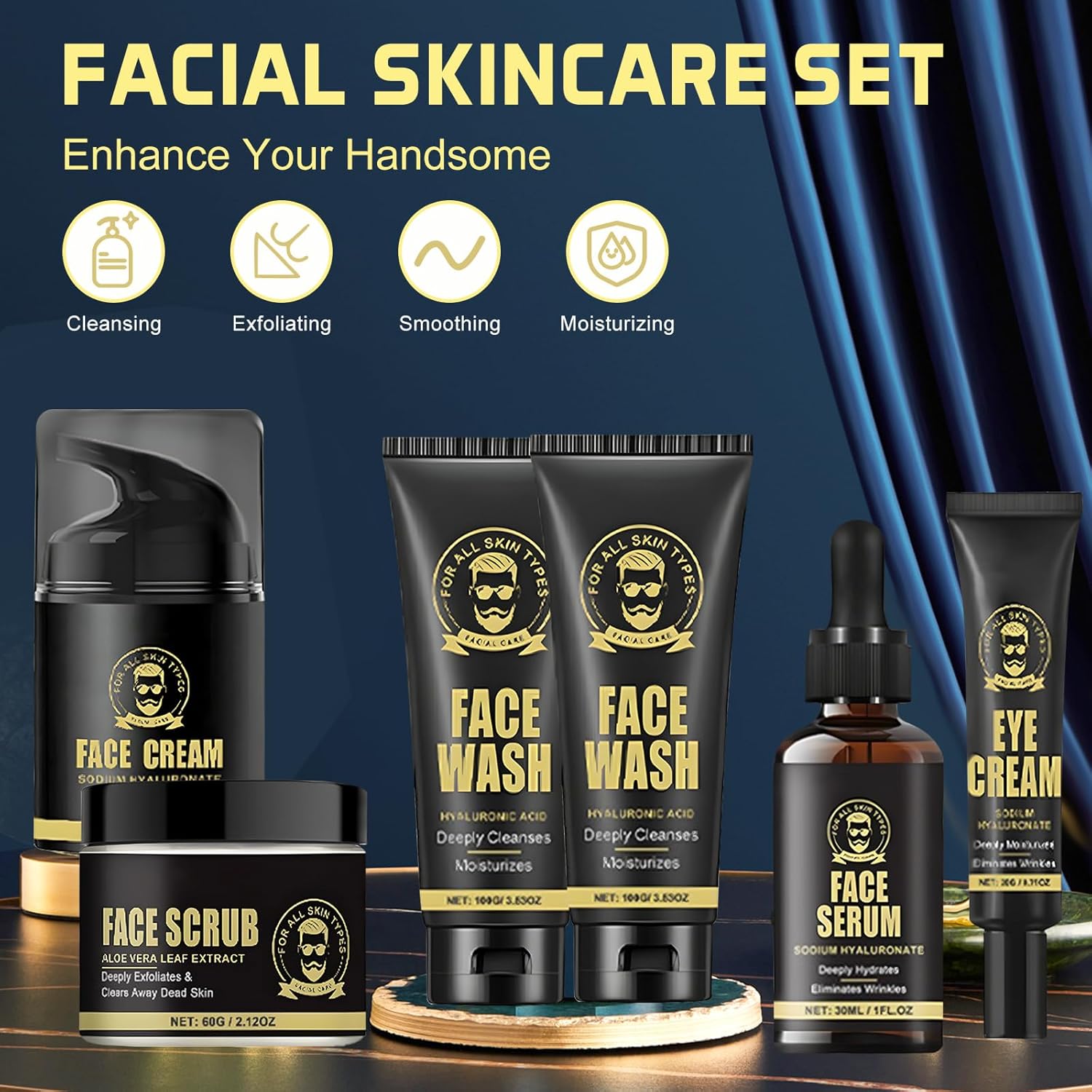 Men's Skincare Set: This 5 pieces men's skincare set contains a facial cleanser, facial scrub, serum, eye cream, and face cream to deeply cleanse the skin and reduces excess oil, replenishes moisture for dry skin.