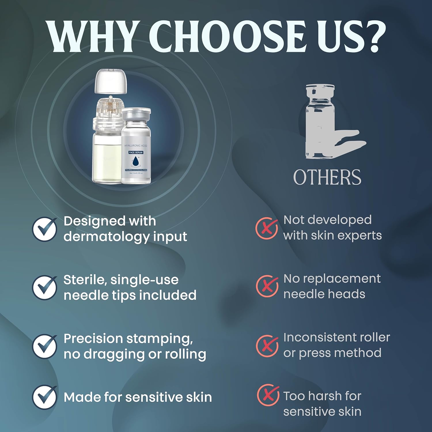 DEEP PENETRATION SYSTEM: The premium titanium microneedling stamp creates tiny channels that stimulate collagen production while enhancing serum absorption. These micro-channels allow ingredients to reach deeper skin layers where they're most effective.