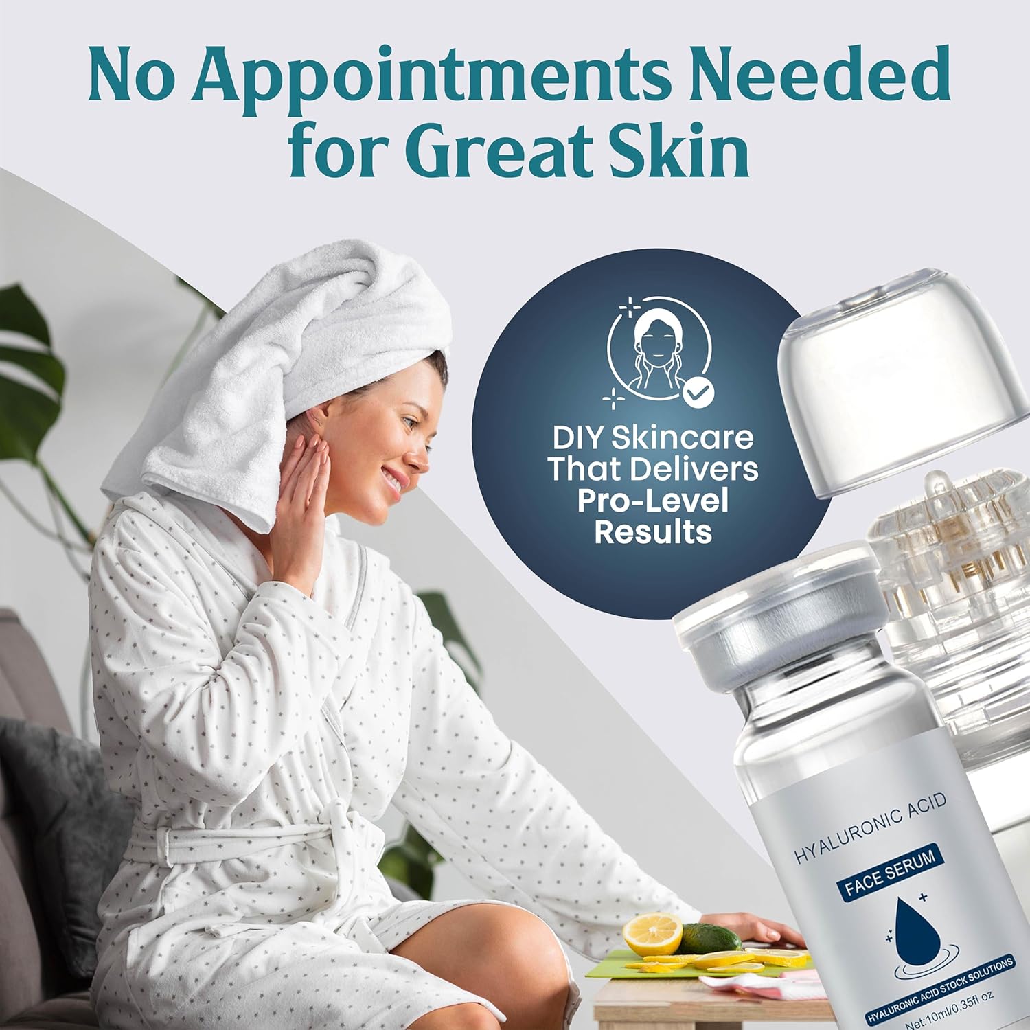 LUXURY SPA ALTERNATIVE: This microneedling serum kit comes with everything you need - 1 Serum, 1 Applicator, and 1 Dropper. You'll love how your skin looks and feels, plus you'll save both your time and your wallet compared to those fancy salon treatments.