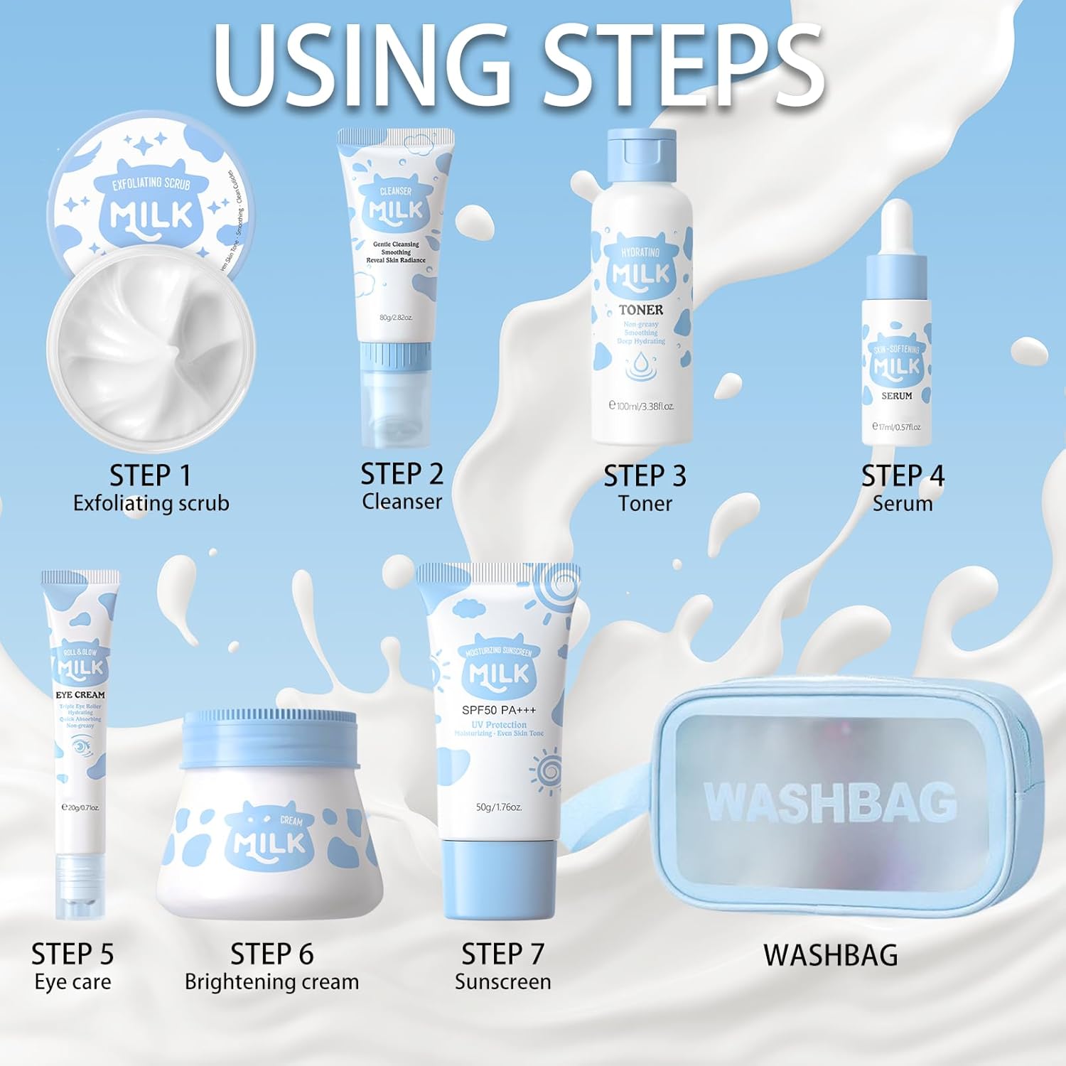 【Skincare Gift Set for Women】 This facial set is a loving and cozy holiday womens gifts option; Give these milk skincare gift set for teen girls gifts and spring gifts for women to your mother, lover, daughter, or sister to pamper their beauty and health