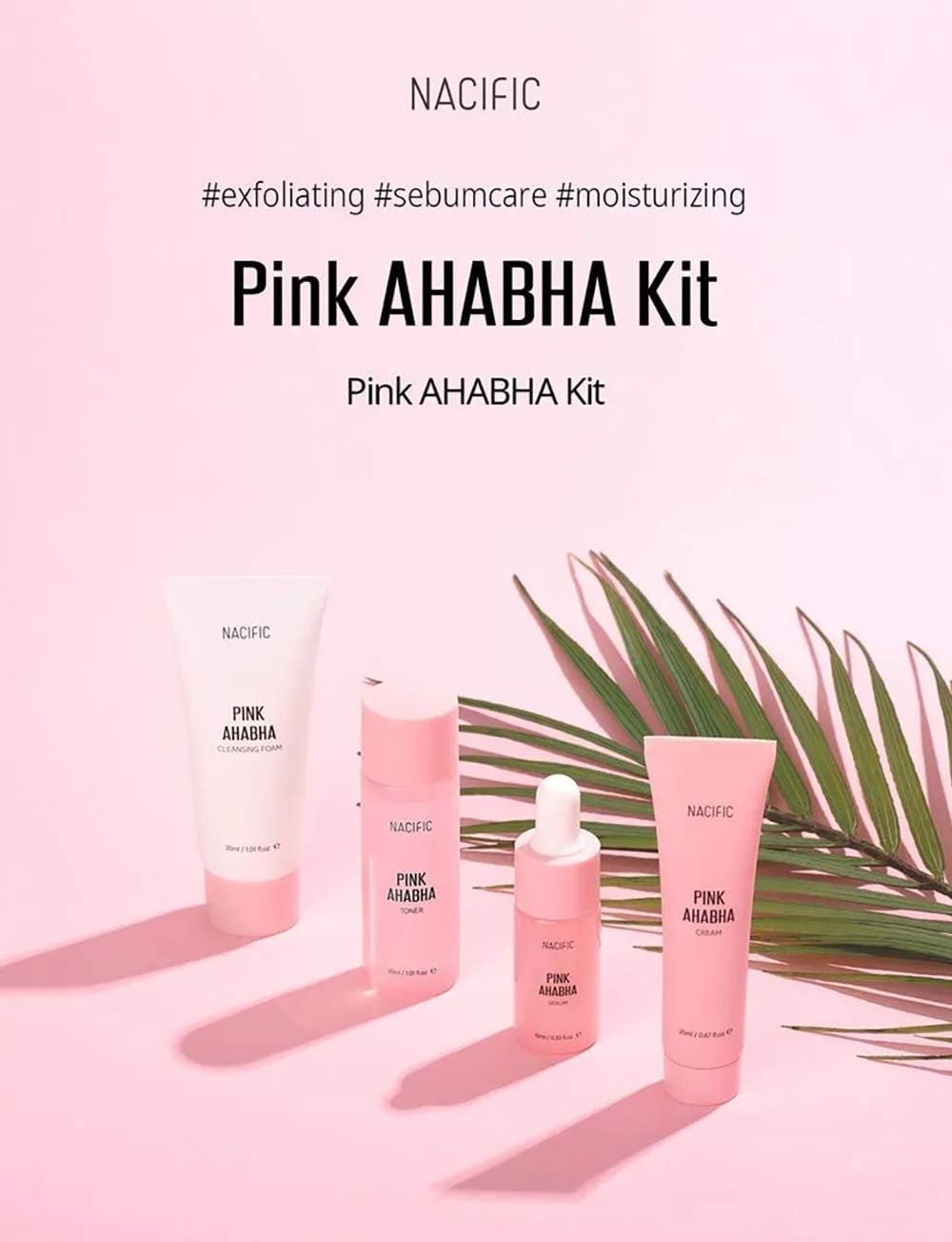 Nacific Pink AHA BHA Kit (Cleansing Foam, Toner, Serum, Cream) Travel Size Skin Care Set
