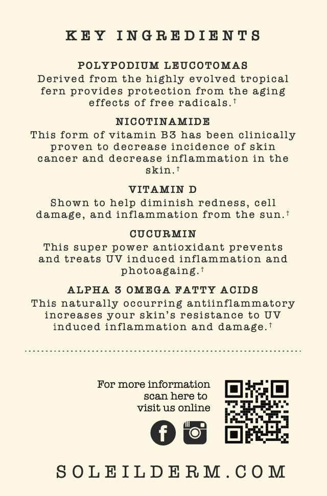 Contains Polypodium Leucotomos: An extract from a tropical fern that protects against free radical damage, combating premature aging.