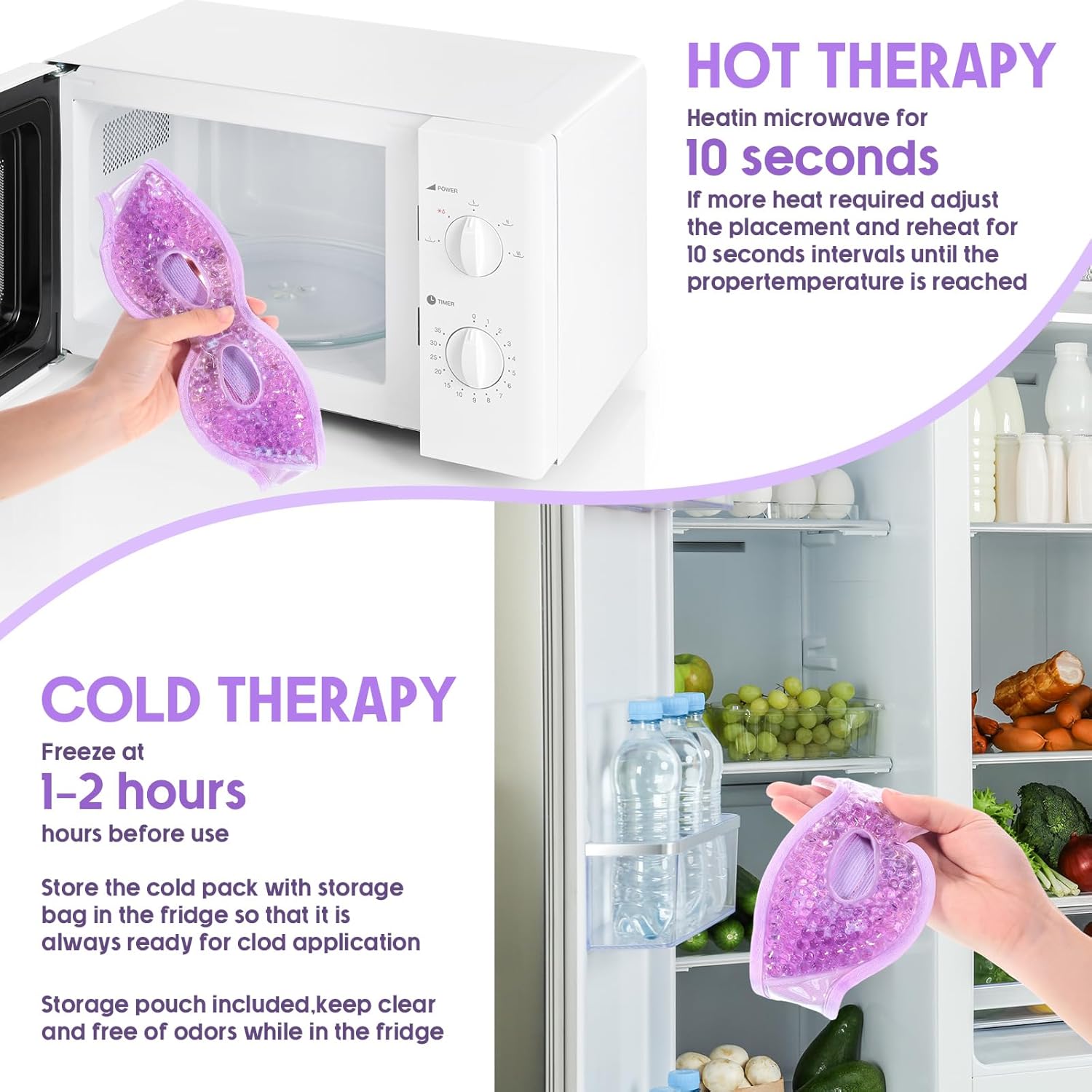 Hot and Cold Usage: for cold compress, you can chill cooling eye mask for sleeping in the refrigerator for about 40 to 60 minutes which can be based on personal preference; The cooling eye mask for sleeping is packaged in a resealable bag for clean storage and extended product lifespan, as well as to prevent absorption of refrigerator odors; For a heat compress, simply heat the mask in the microwave on medium high heat for about 10 seconds each time