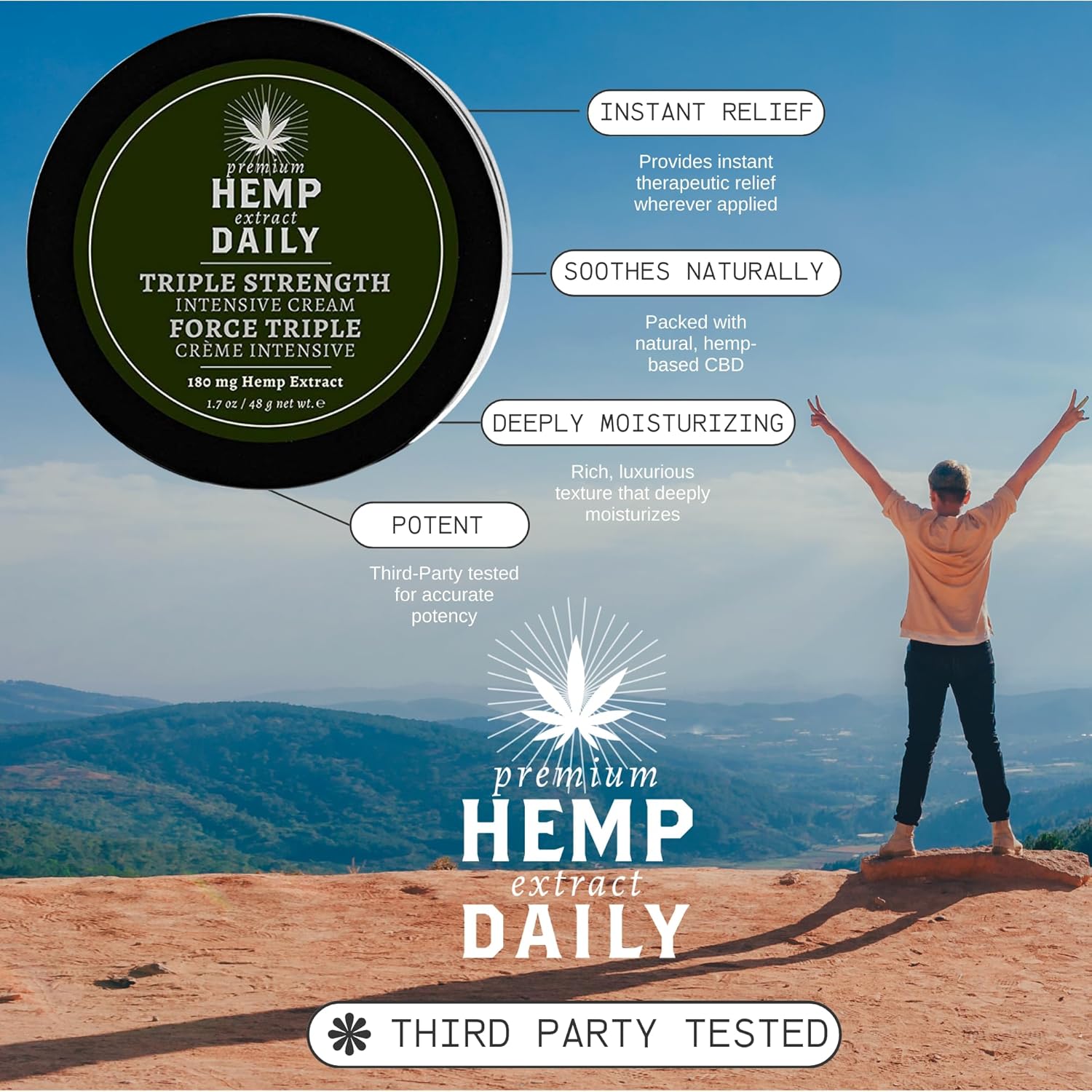 Premium Hemp Extract Daily Triple Strength Intensive Cream - Topical Rub with Essential Oils and Moisturizer - Vegan, Organic Ingredients - Classic Mint, 1.70 oz - Single(Original Mint,1.7 Ounce (Pack of 1))