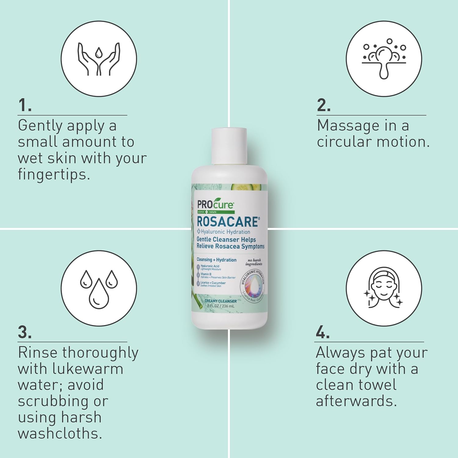 GENTLE CLEANSER FOR ROSACEA PRONE SKIN: The PROCure Rosacare Cream Cleanser gently cleanses & hydrates sensitive rosacea skin without damaging the delicate skin barrier. Must-have for your everyday rosacea skincare routine for all-day redness relief
