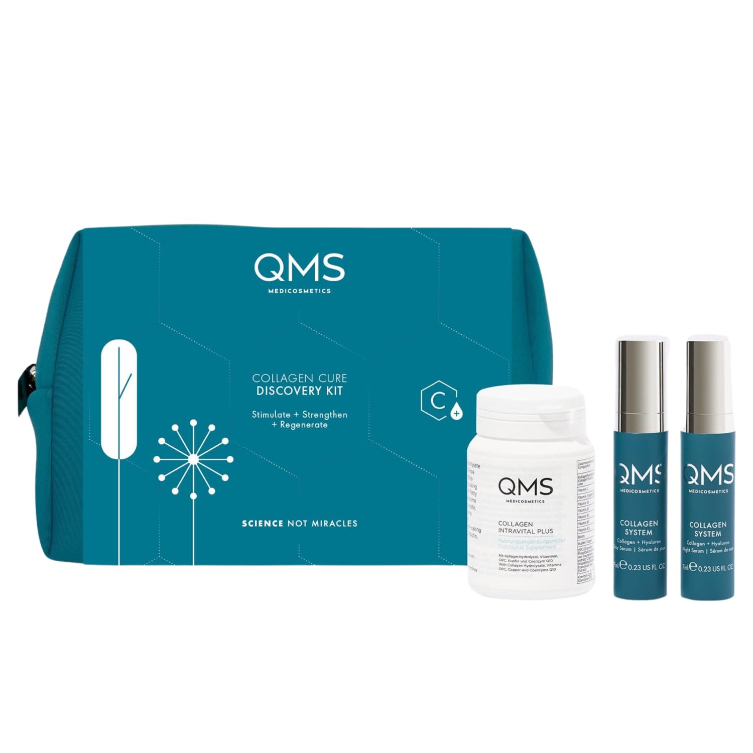 QMS Medicosmetics Collagen Cure Discovery Kit – Stimulates, Strengthens + Regenerates – Includes Travel Size Day Serum, Night Serum + Collagen Intravital Plus Supplement