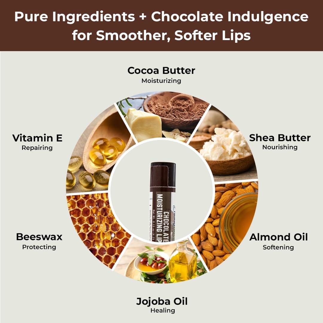 PURE, NATURAL INGREDIENTS FOR HYDRATED LIPS: Handmade with Beeswax, Vitamin E, Shea butter, Cocoa butter, Jojoba oil and Almond oil, our unscented lip balm hydrates and protects dry, chapped lips with long-lasting nourishment.
