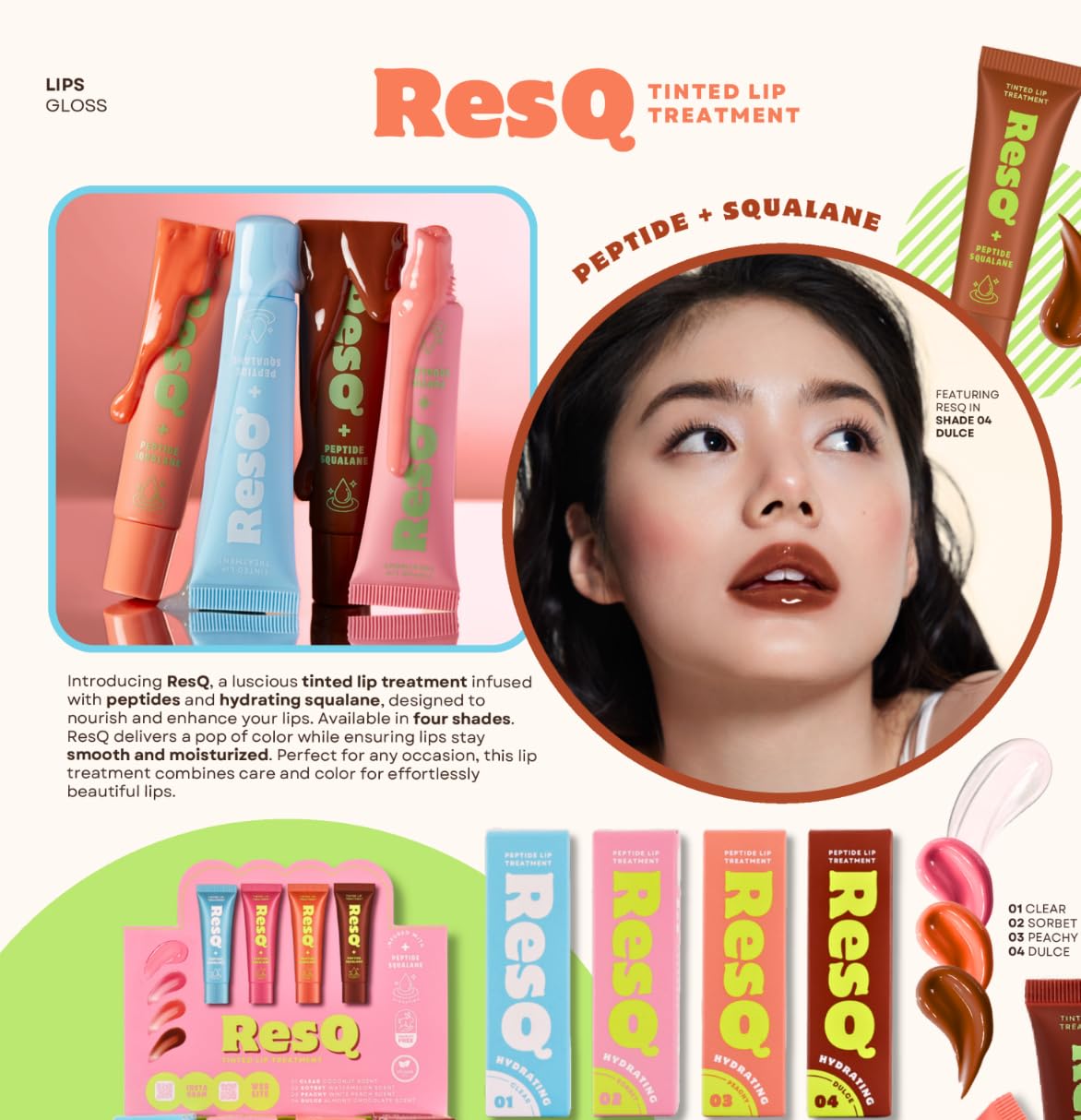 ResQ Peptide Lip Treatment Sorbet Tinted Lip Balm with Peptides and Squalane Moisturizing Lip Care for Chapped Lips Watermelon Flavor 0.46 OZ /13G,Pack of 1