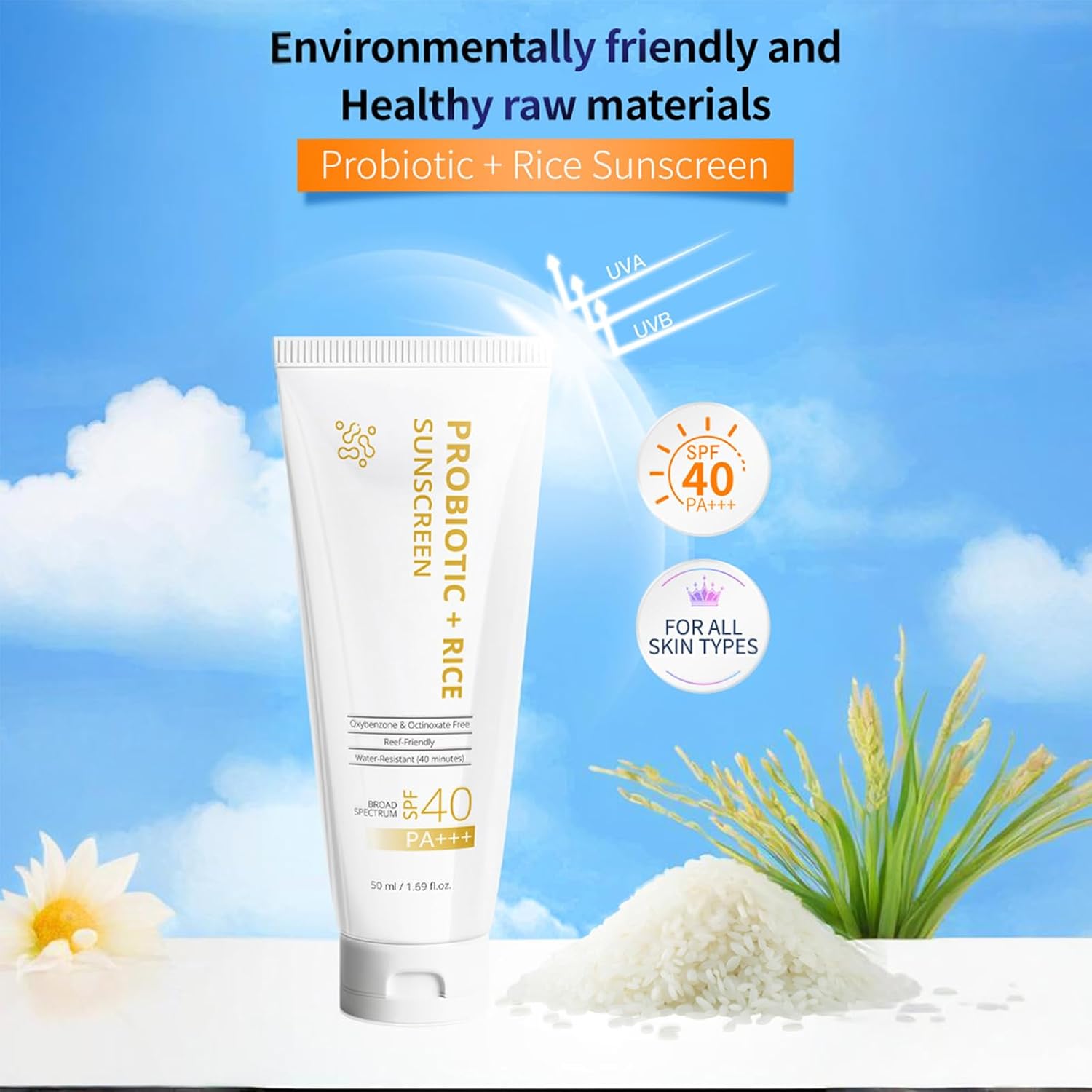Rice + Probiotics Organic Sunscreen, Relief Sun Organic SPF40+ Sunscreens for Face and Body, Nourishing Skin Protection and UV Defen, Skin Care Sunscreen for All Types